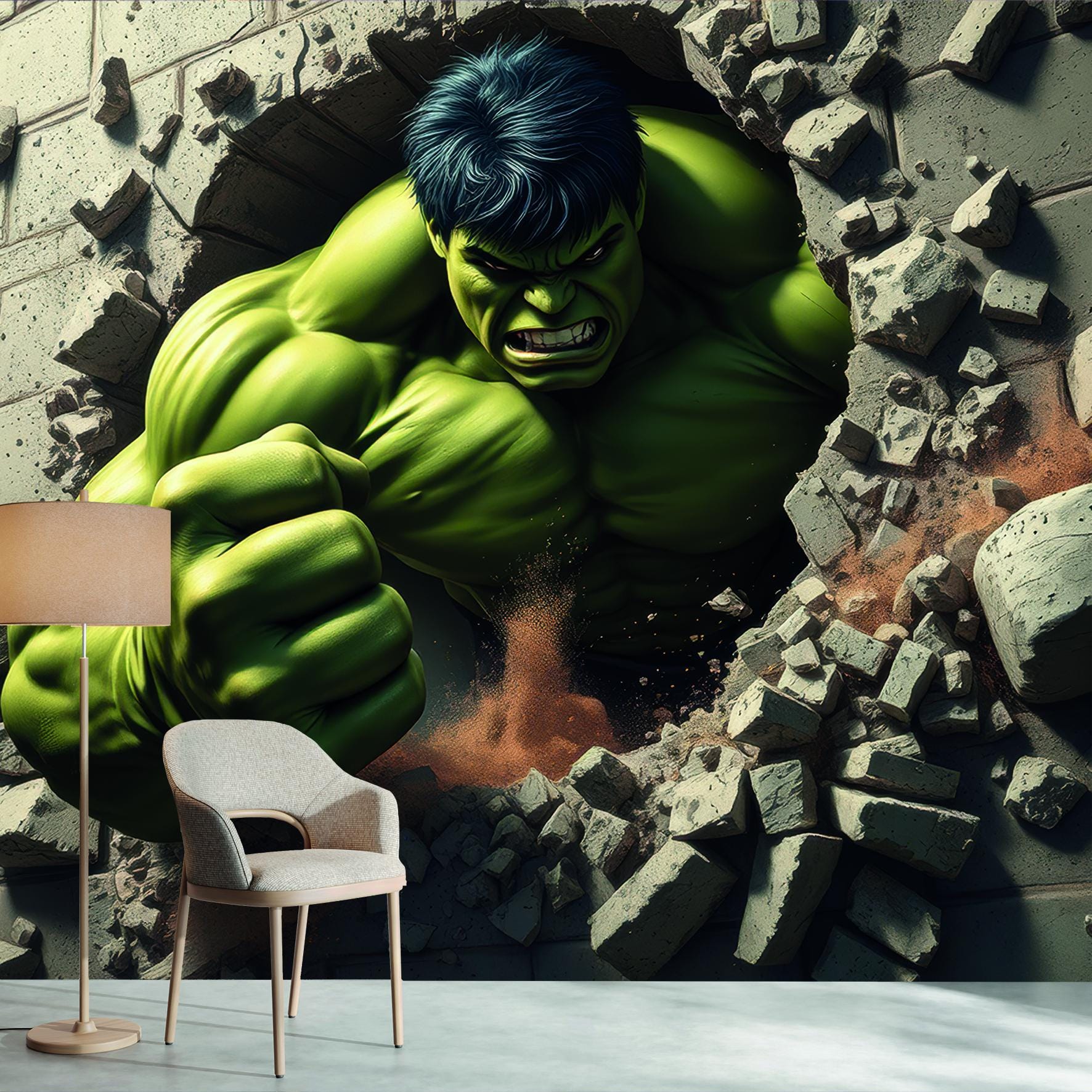 Comics Superhero Wallpaper 3D Breaking Wall Effect Gaming Room Deco...