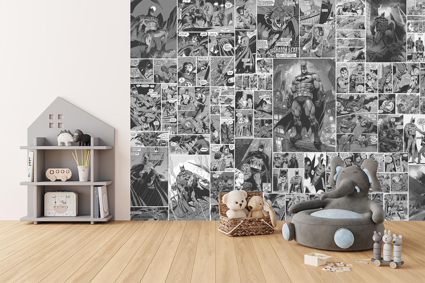 Comic Book Wall Mural Retro Masked Hero Wallpaper Collage Dark Supe...
