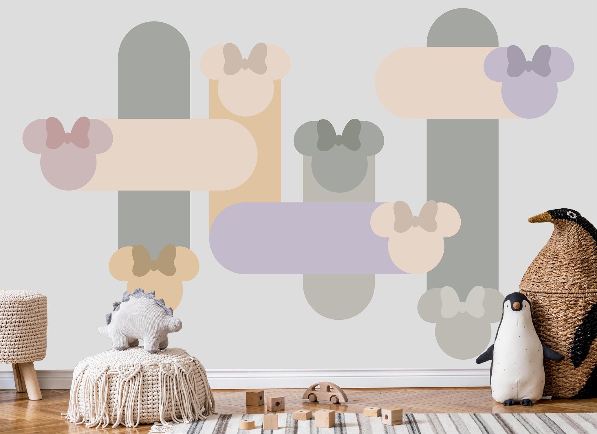 Pastel Minnie Mouse Wallpaper For Girl Bedroom, Modern Nursery Mick...