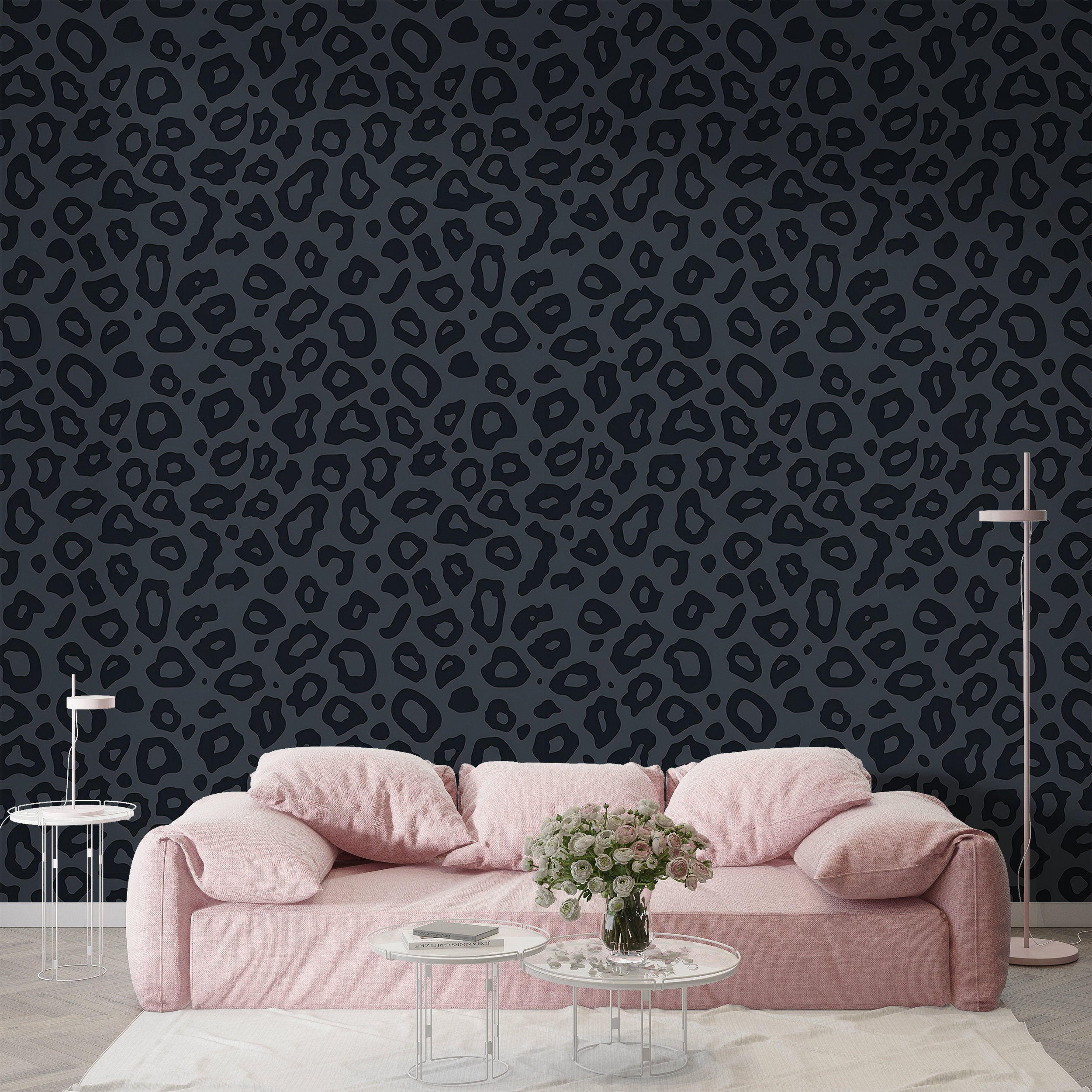 "Enhance your space with our Modern Grey and Black Leopard Print Wallpaper, featuring a stylish...