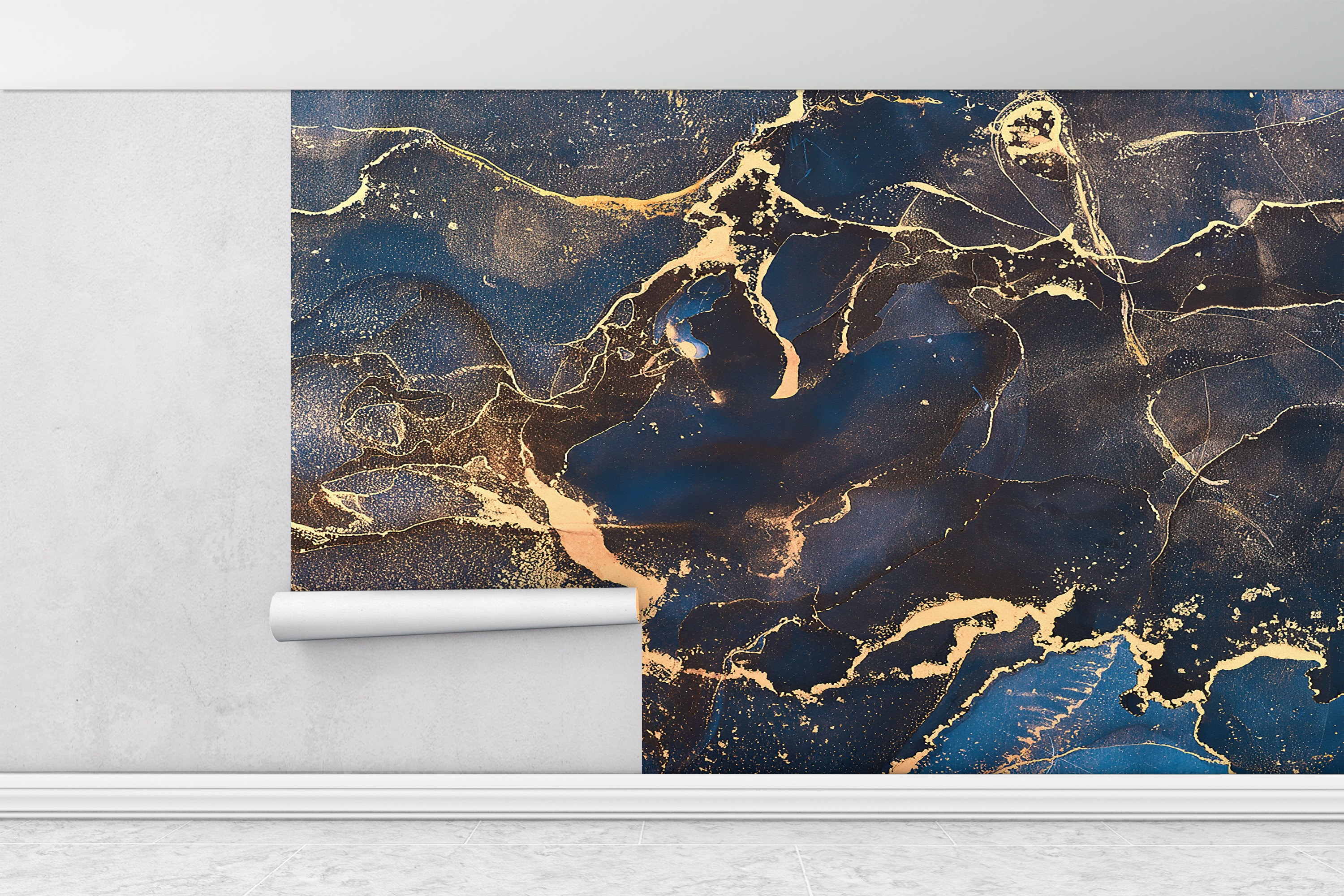 Navy Blue And Gold Marble, Luxury Marble Wallpaper, Modern Marble W...