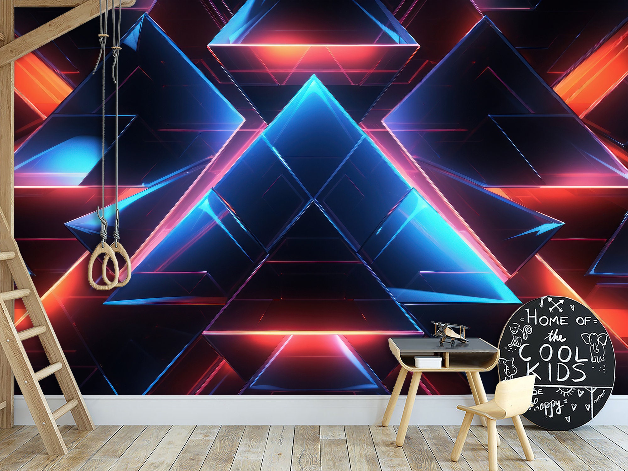 Triangle Neon Geometric Decor Games Room Wallpaper & Wall Mural...