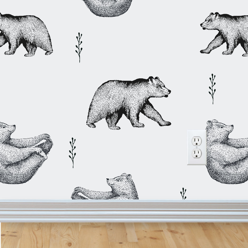 Bear Removable Wallpaper, woodland nursery, nursery wall decor, rus...