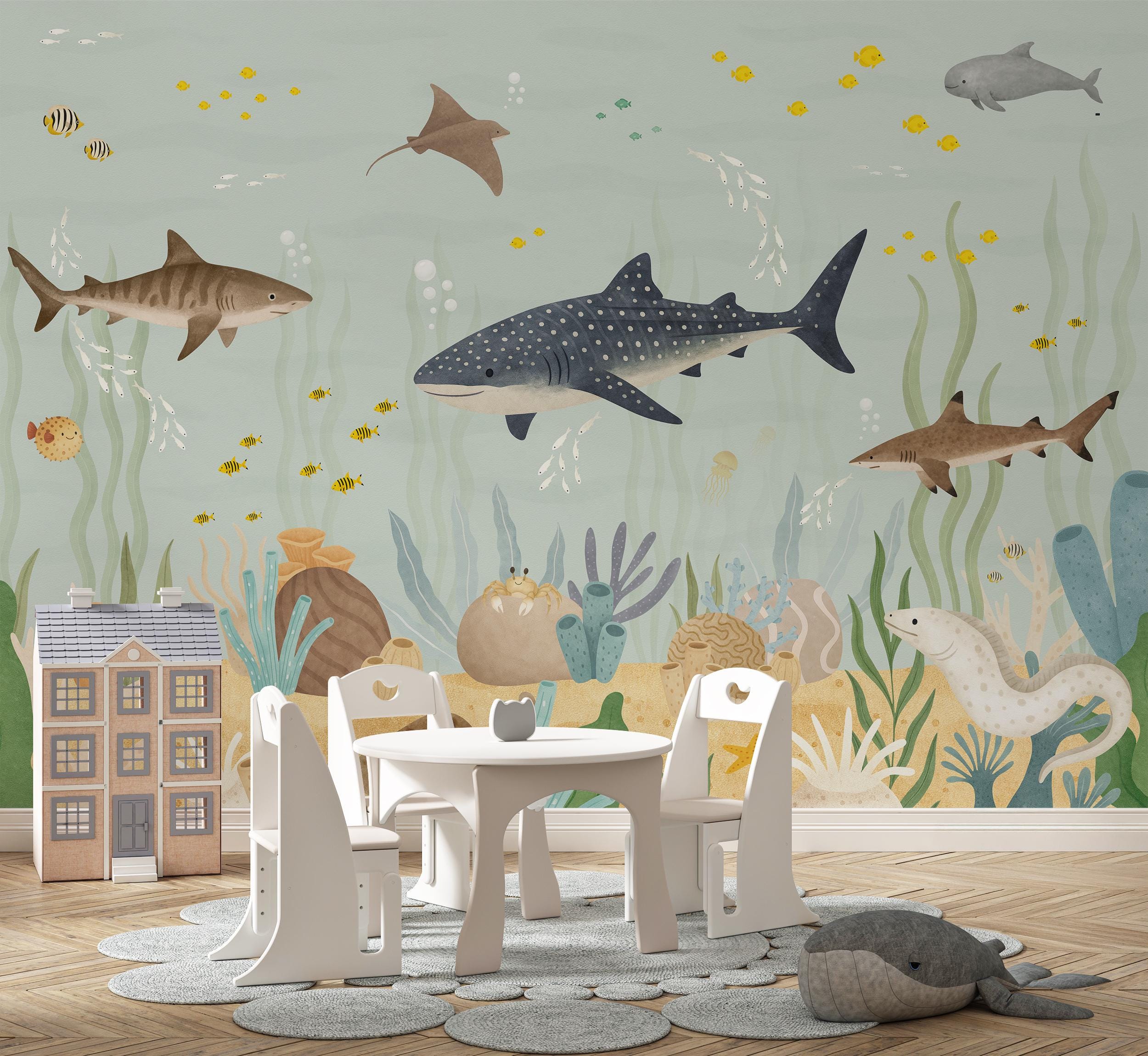 Shark nursery wallpaper Peel and Stick, ocean boy nursery decor kid...