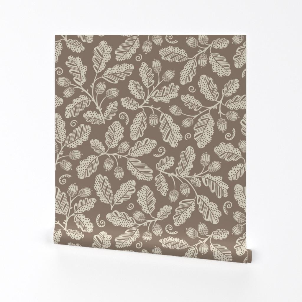 Cabincore Removable Peel and Stick Wallpaper - Oak Leaves Acorns Ga...