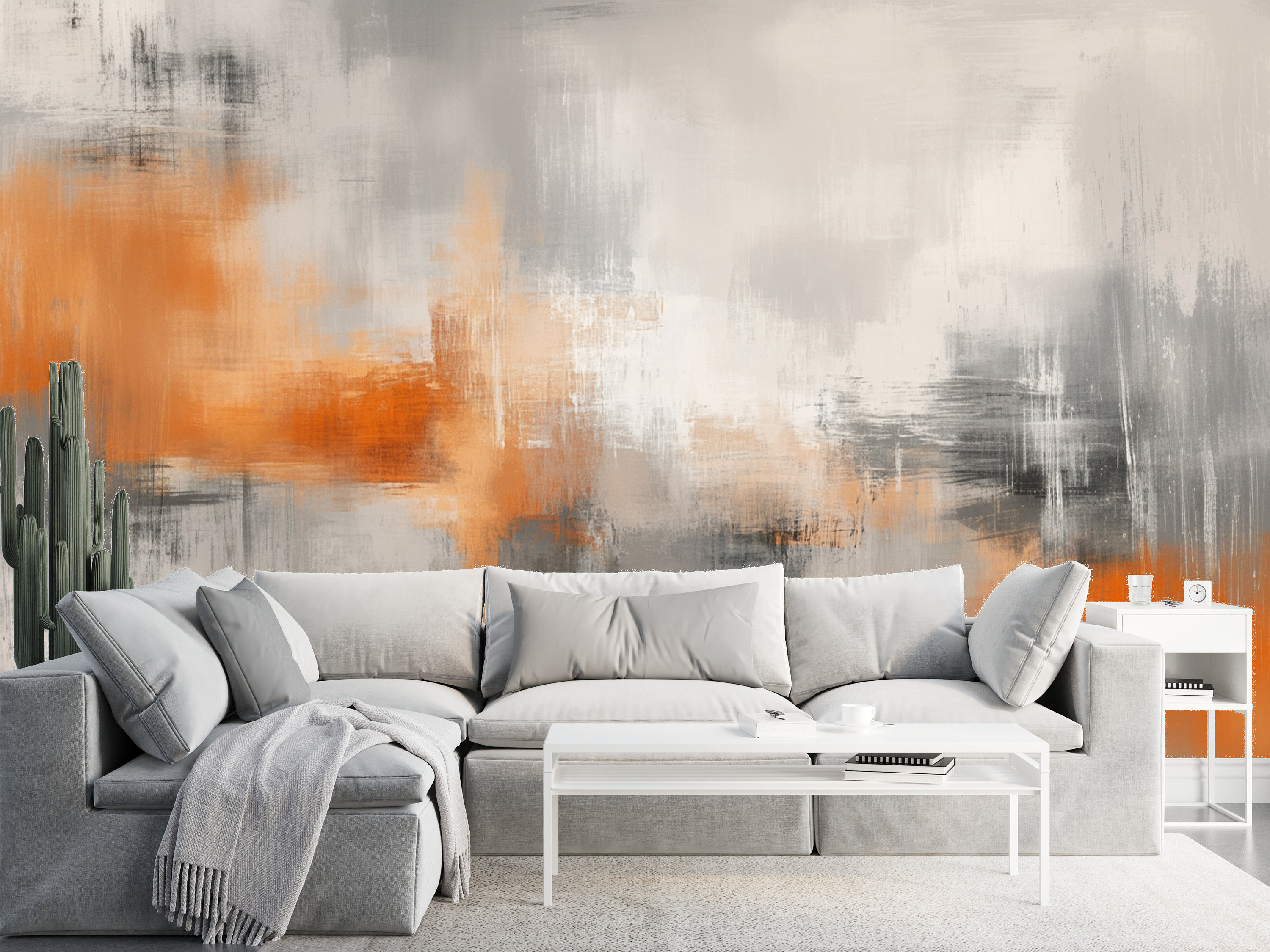 Orange and Gray Oil Painting Textured Wallpaper, Beige Brush Wall M...