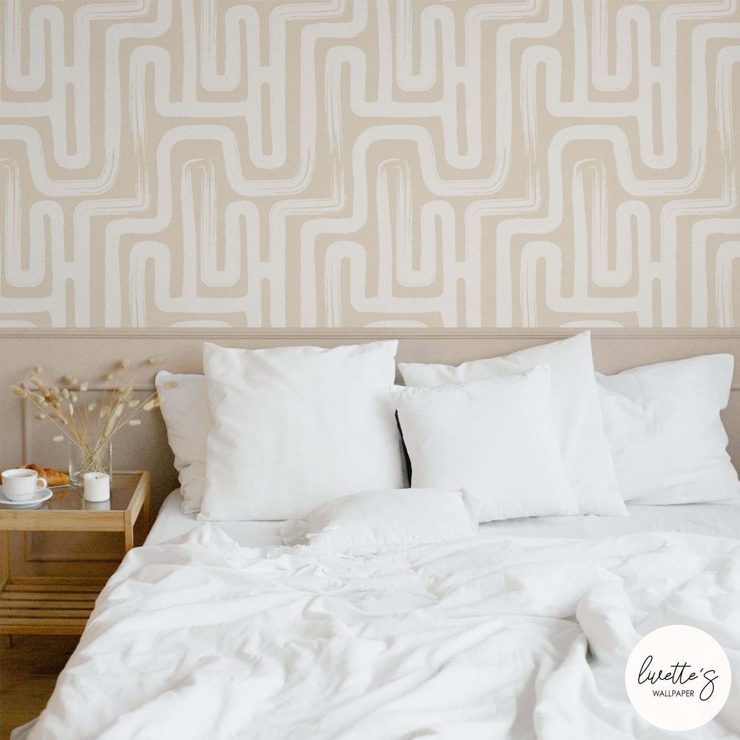 Neutral Paintbrush Maze Wallpaper, Bohemian Kids Room Decor, Remova...