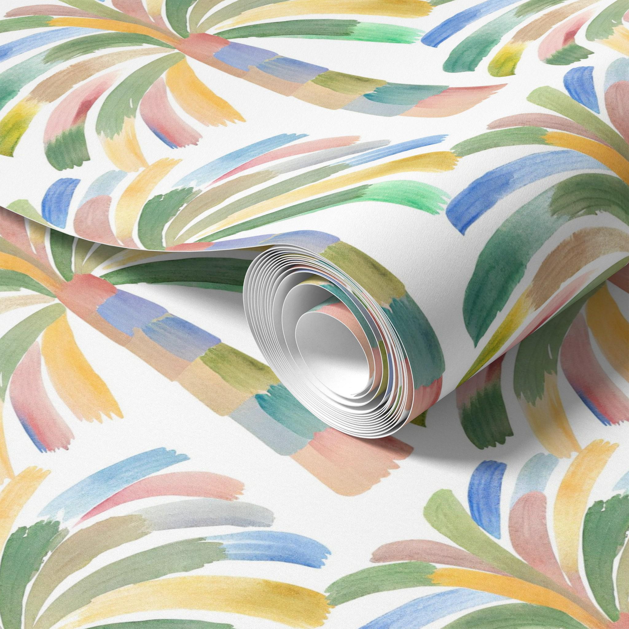 Colorful Paintbrush Strokes Watercolor Palm Trees Coastal Wallpaper...