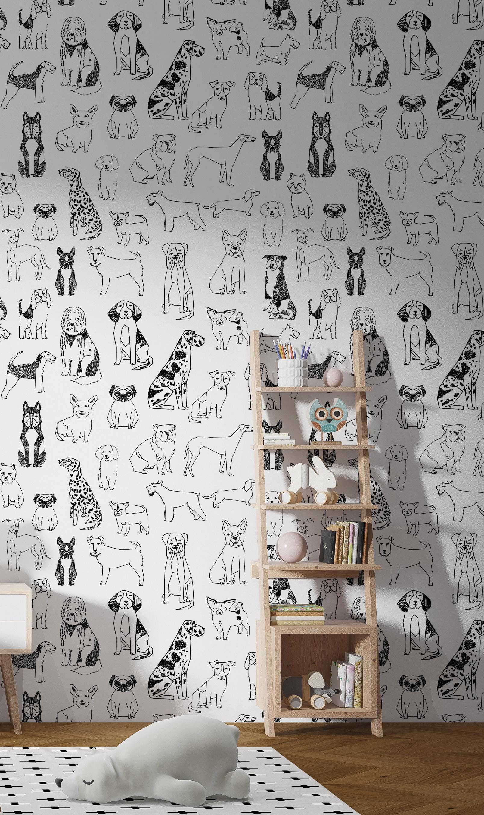Dog Wallpaper Peel and Stick, Pets Nursery Kids Dogs Wall Art, Peel...