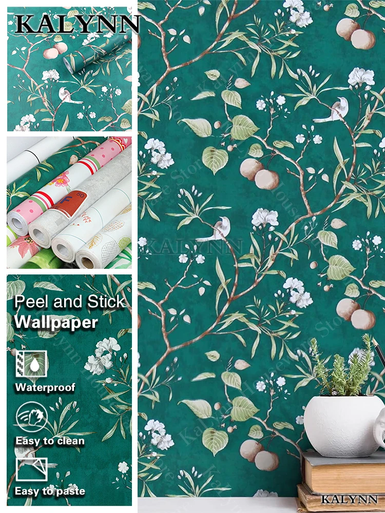 Green Floral Contact Paper,Vinyl Peel and Stick Wall Paper,Vintage Self Adhesive Wallpaper for Bedro...