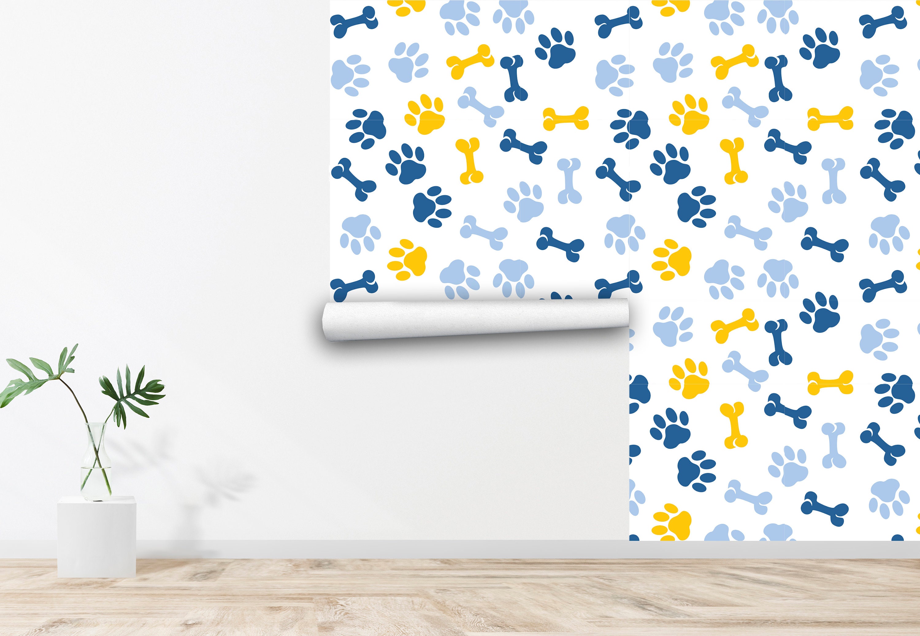 Paw Print Wallpaper - Blue & Green Removable Wall Mural, Kids R...