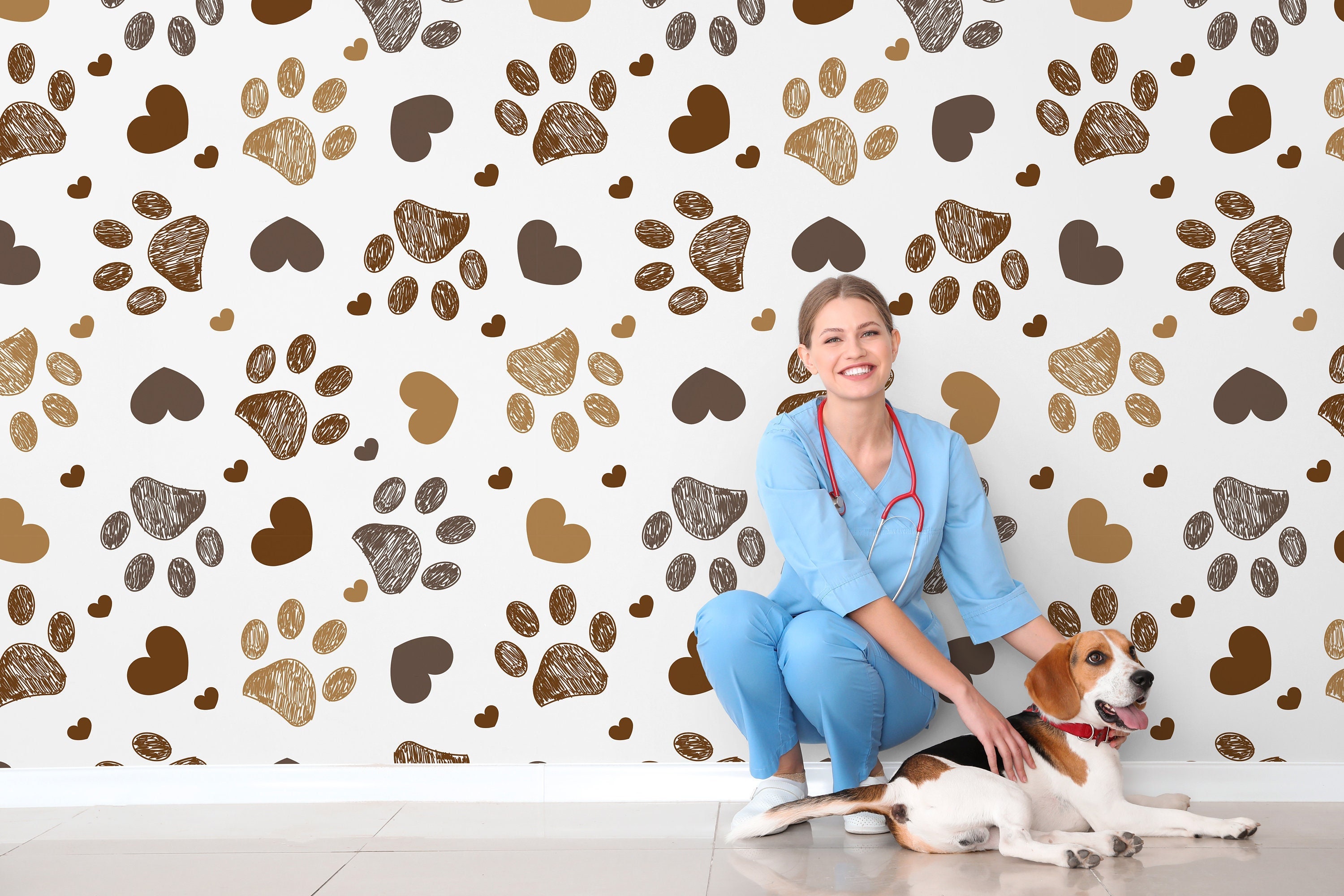 Dog Wallpaper, Animal Paws Wallpaper, Brown Wallpaper, Vet Wall Art...