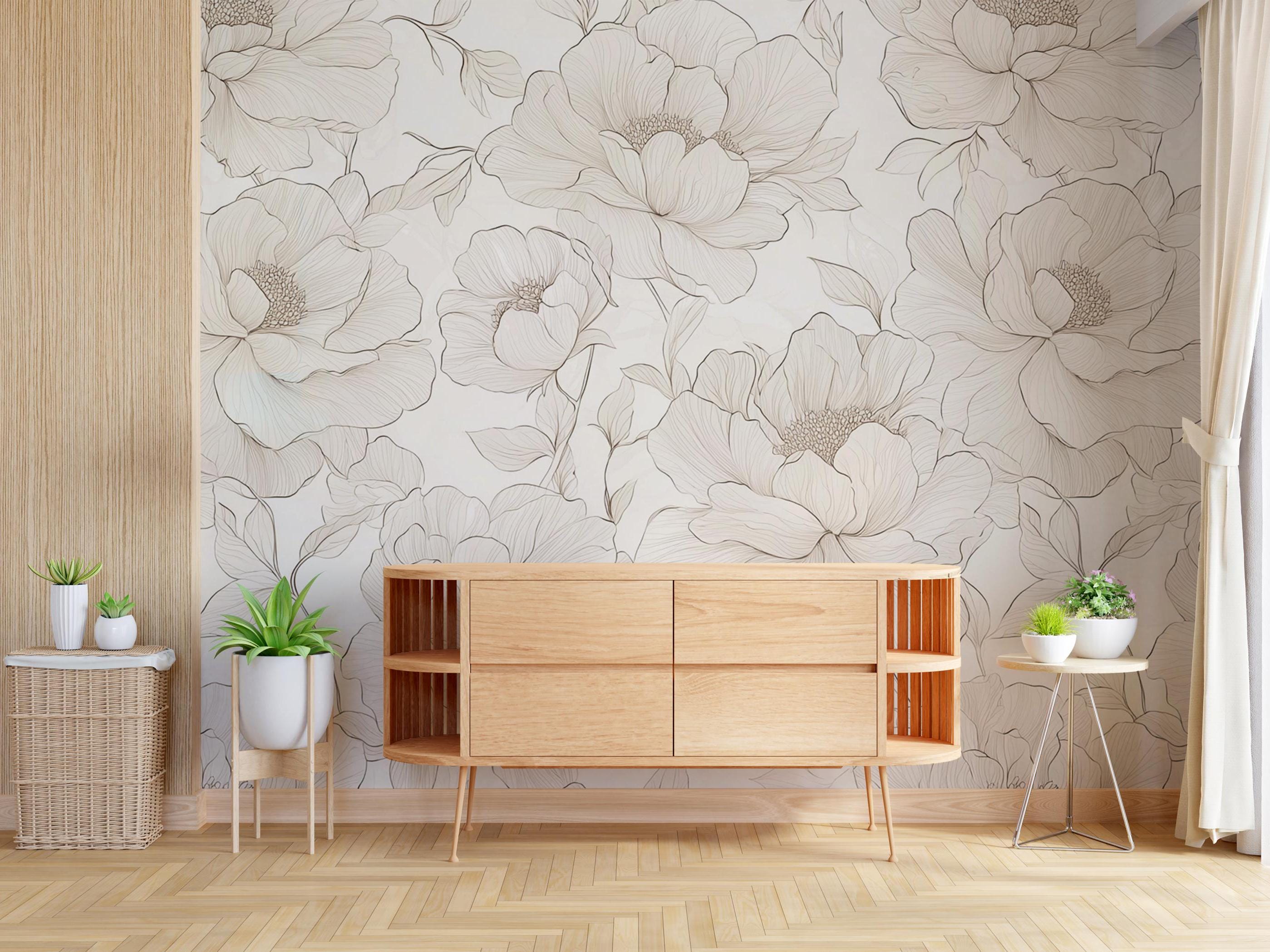 Elegant Floral Wallpaper Transform your space with this delicate hand-drawn floral wallpaper . Featu...