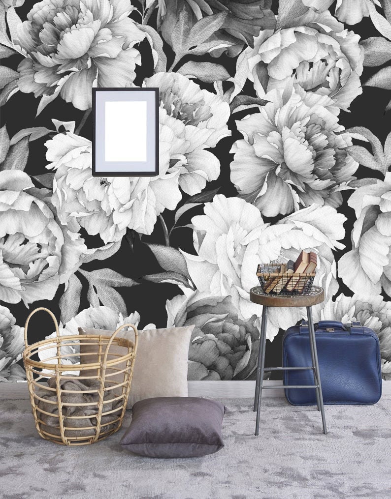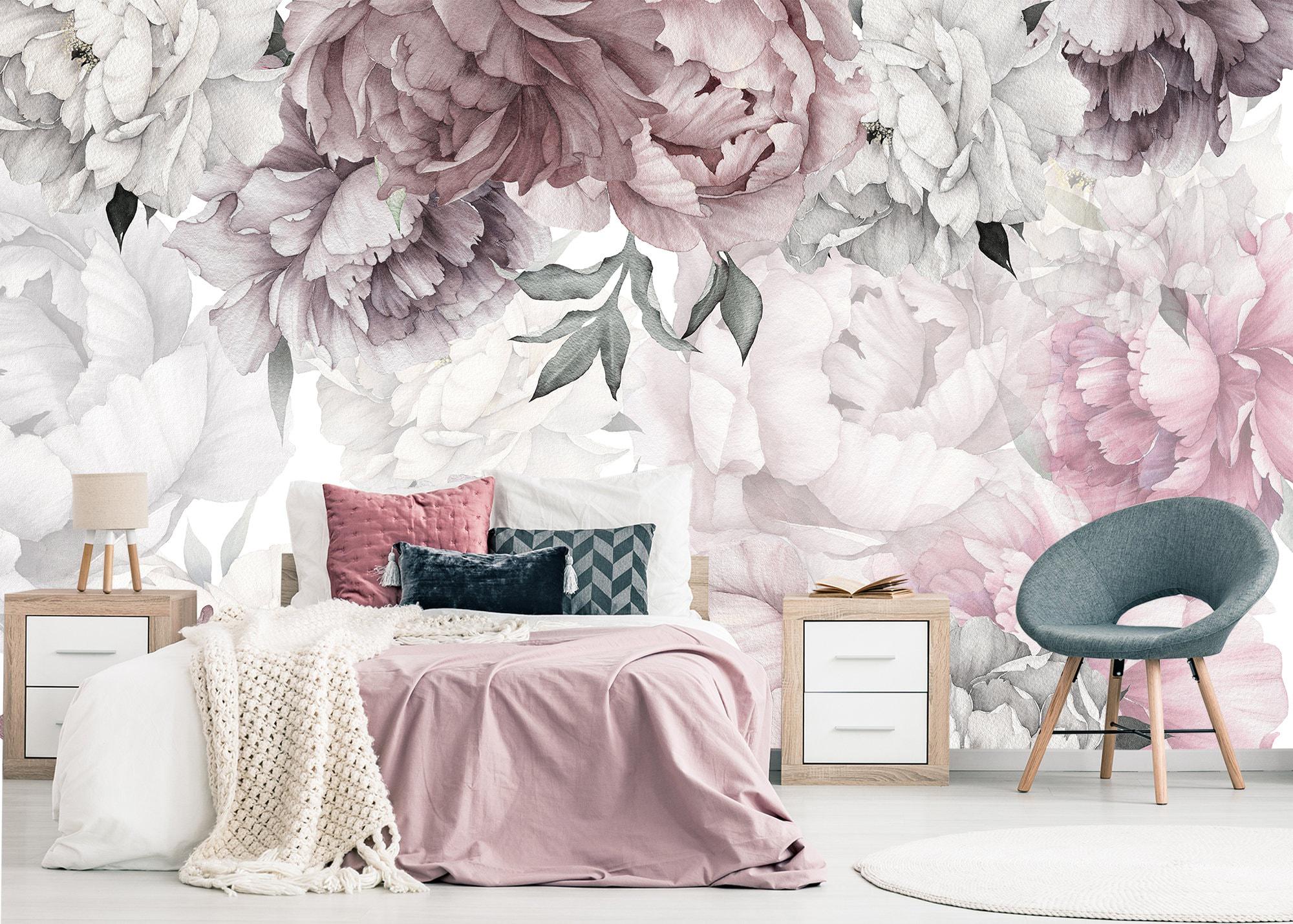 Peony Wallpaper Removable, Floral Wallpaper Peonies, Flower Mural W...