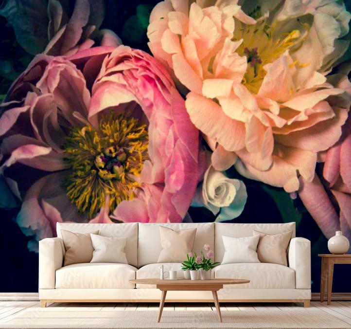 Large Peonies Wall Mural living room Peonies wall Sticker Bedroom Peonies Wall decor Customizable De...