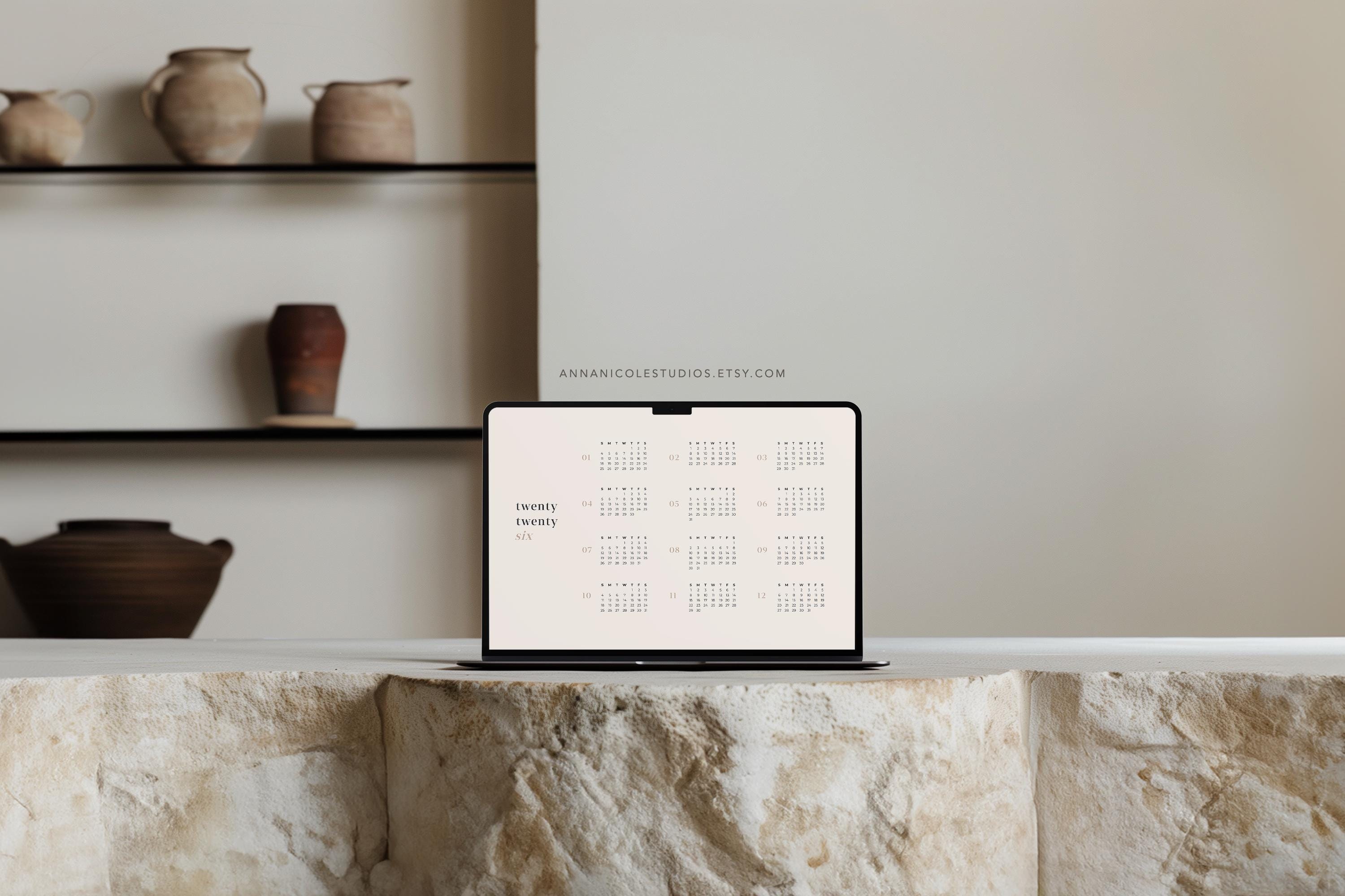 2026 Warm Neutral Desktop Wallpaper | 12-Month Calendar | Laptop Wallpaper | Minimalist Calendar Wal...