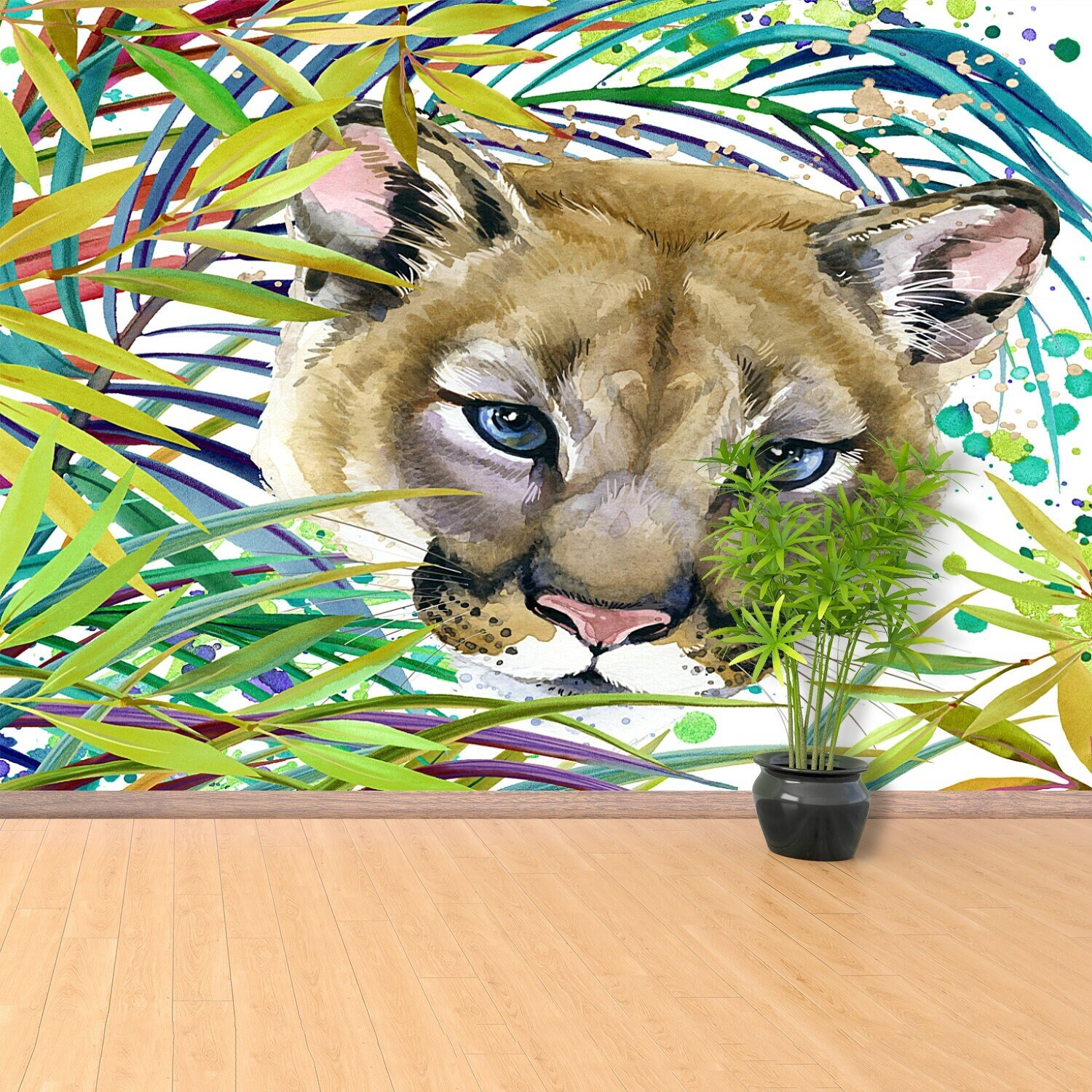 "Mountain lion, watercolor illustration. cougar. Wallmuralia presents you a fabulous collection...