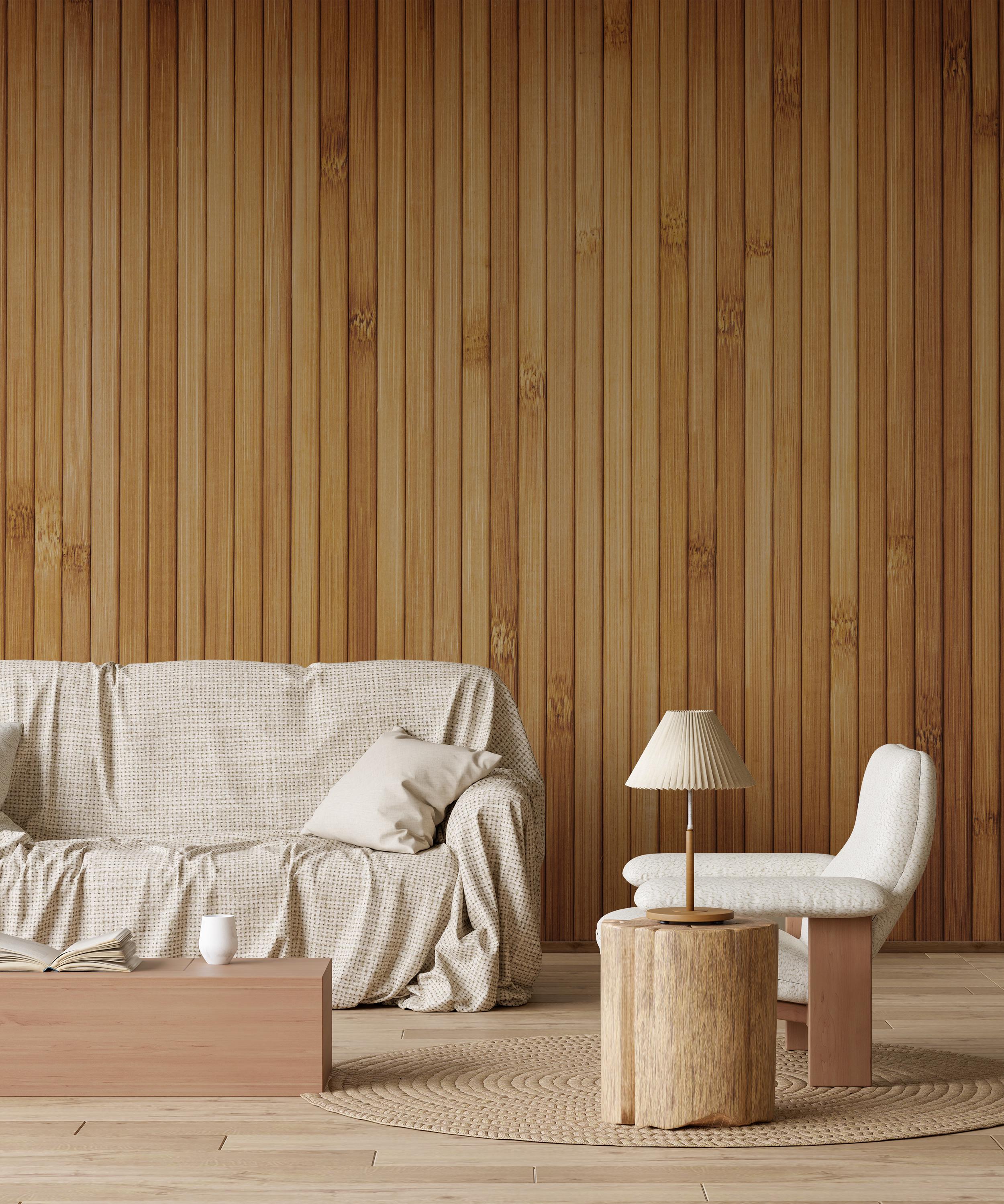 Pine Wood Planks Wallpaper, Wooden Oak Slat Panels Peel & Stick...