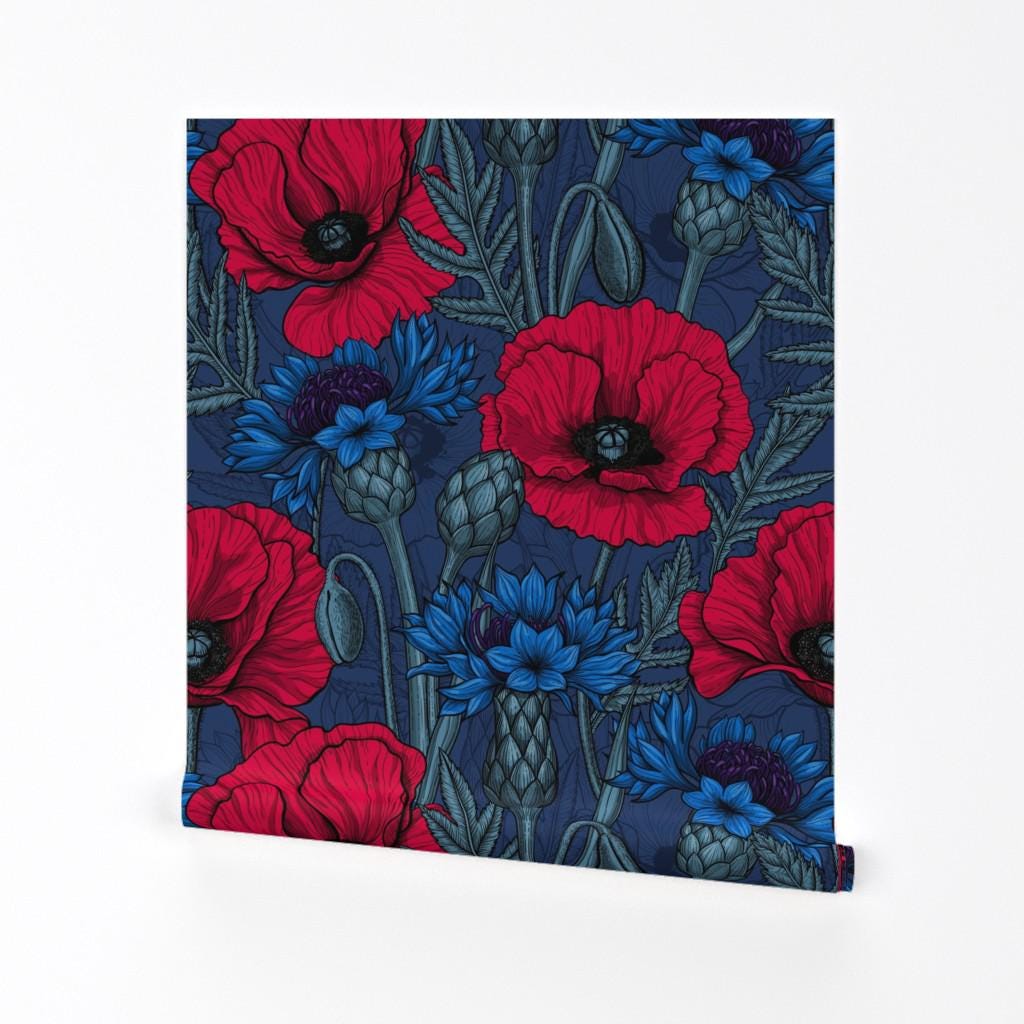 Red Poppy Floral Peel and Stick wallpaper / Flower Removable wallpa...