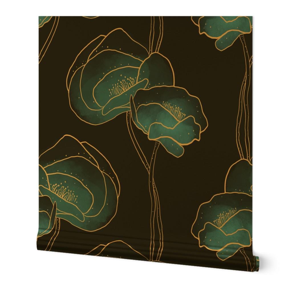 Art Deco Removable Peel and Stick Wallpaper - Poppy Floral Botanica...