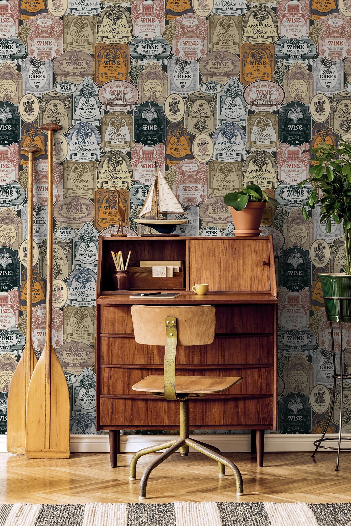 Baroque style wallpaper, wine and wineries labels | Wall Decor | Home Renovation | Wall Art | Peel a...