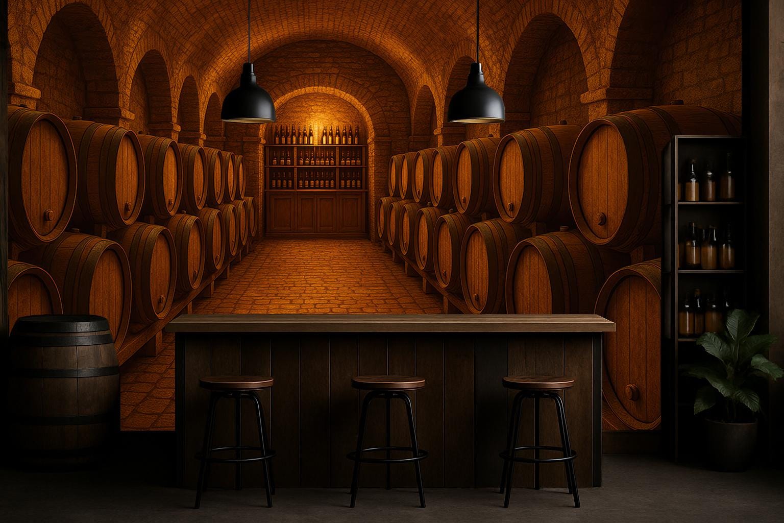 "Wine Cellar Wallpaper Peel and Stick Wall Mural is a perfect choice for creating a warm, atmos...