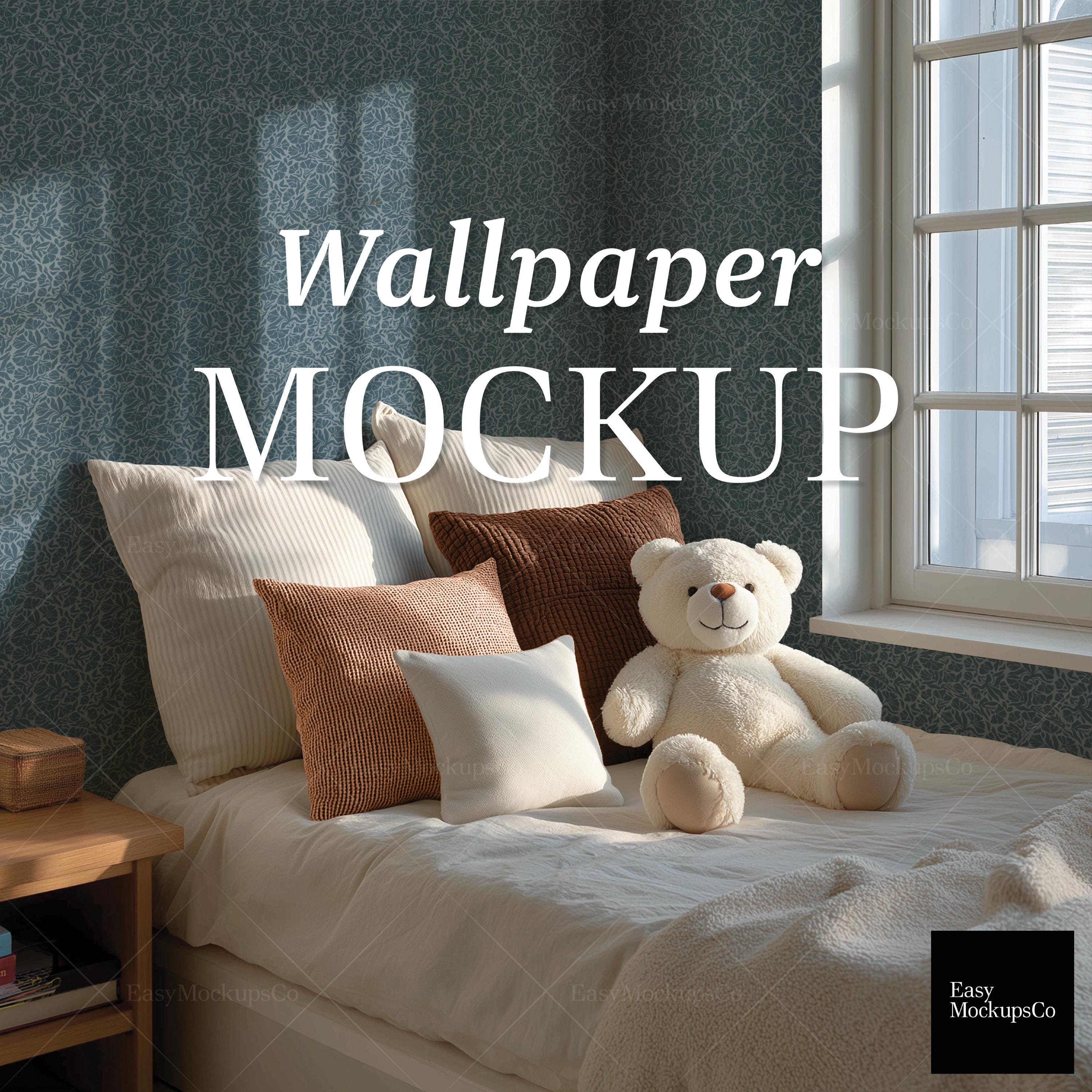 Kids Bedroom Wallpaper Mockup, Neutral Decor, Teddybear, Pattern Mo...