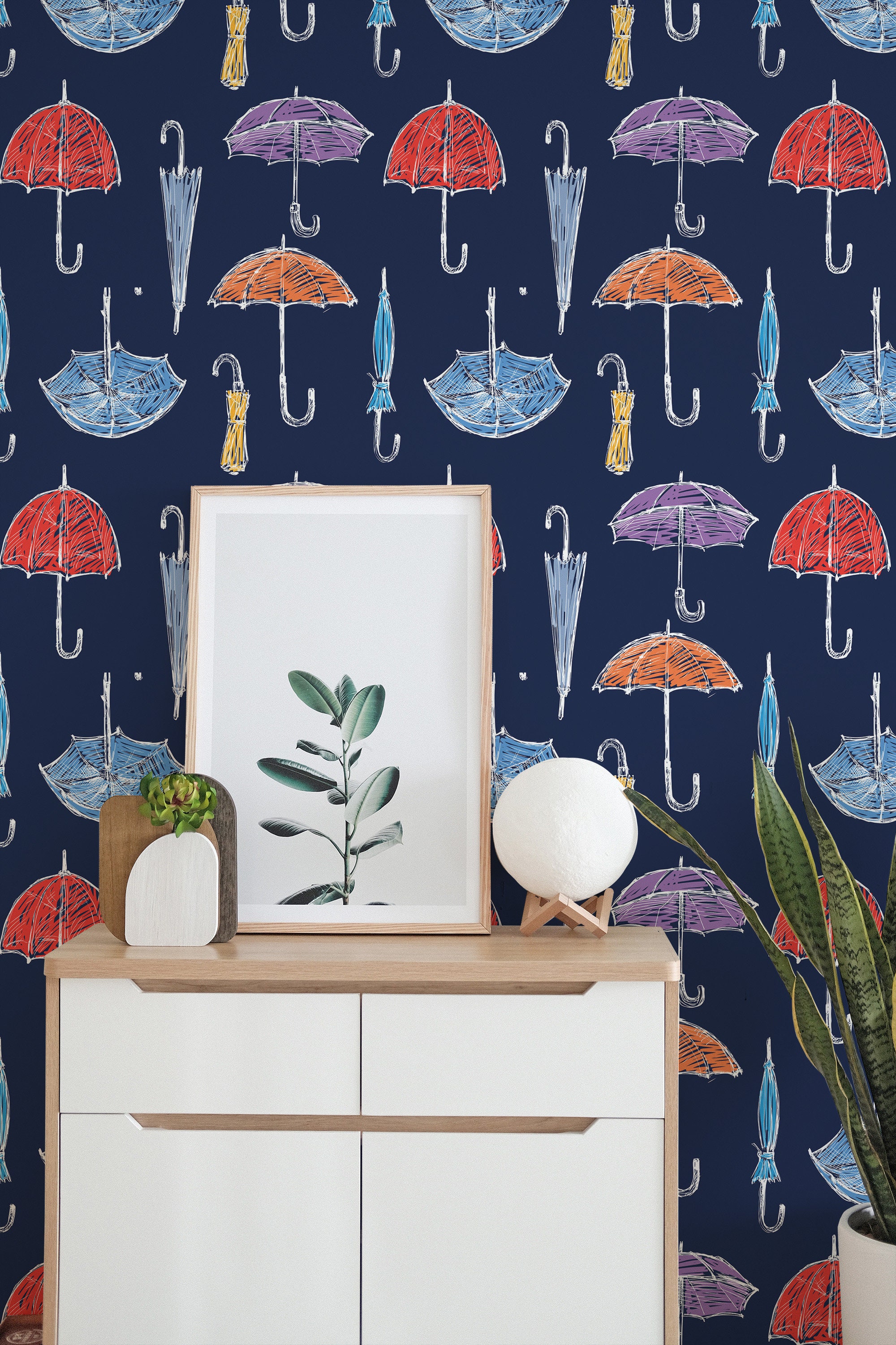 Colorful Umbrella Peel and Stick wallpaper / Rain Removable wallpap...