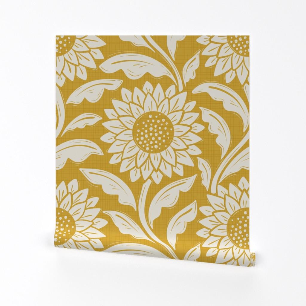 Jumbo Floral Removable Peel and Stick Wallpaper - Yellow Sunflowers...