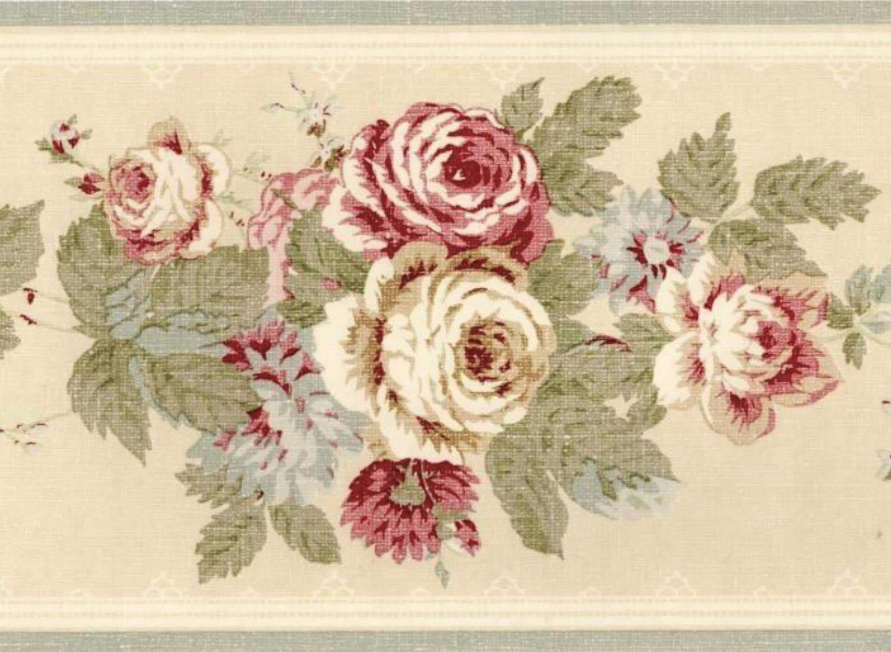 Cottage Rose Wallpaper Border 7 Inch - Vintage Cabbage Rose Sonata ...