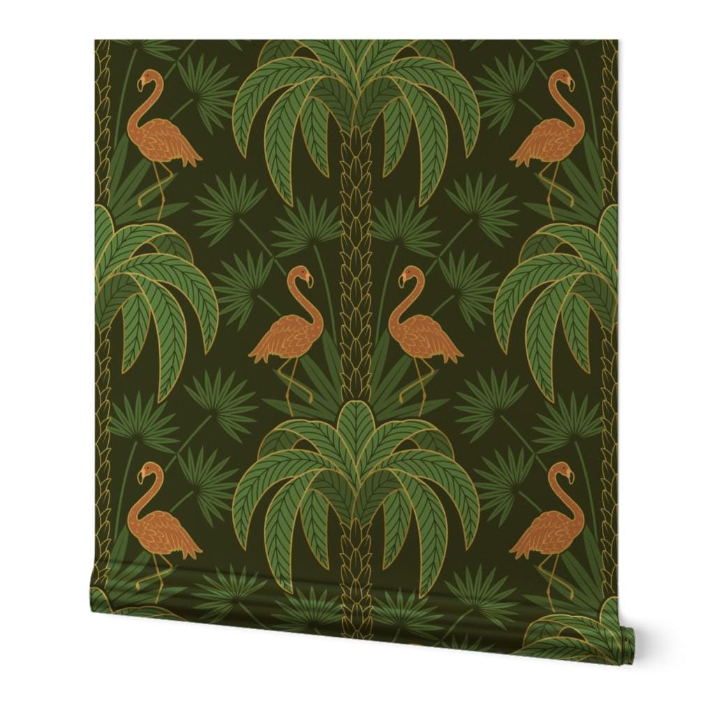 Flamingo wallpaper / palm trees / vintage style / jungle print / ex...