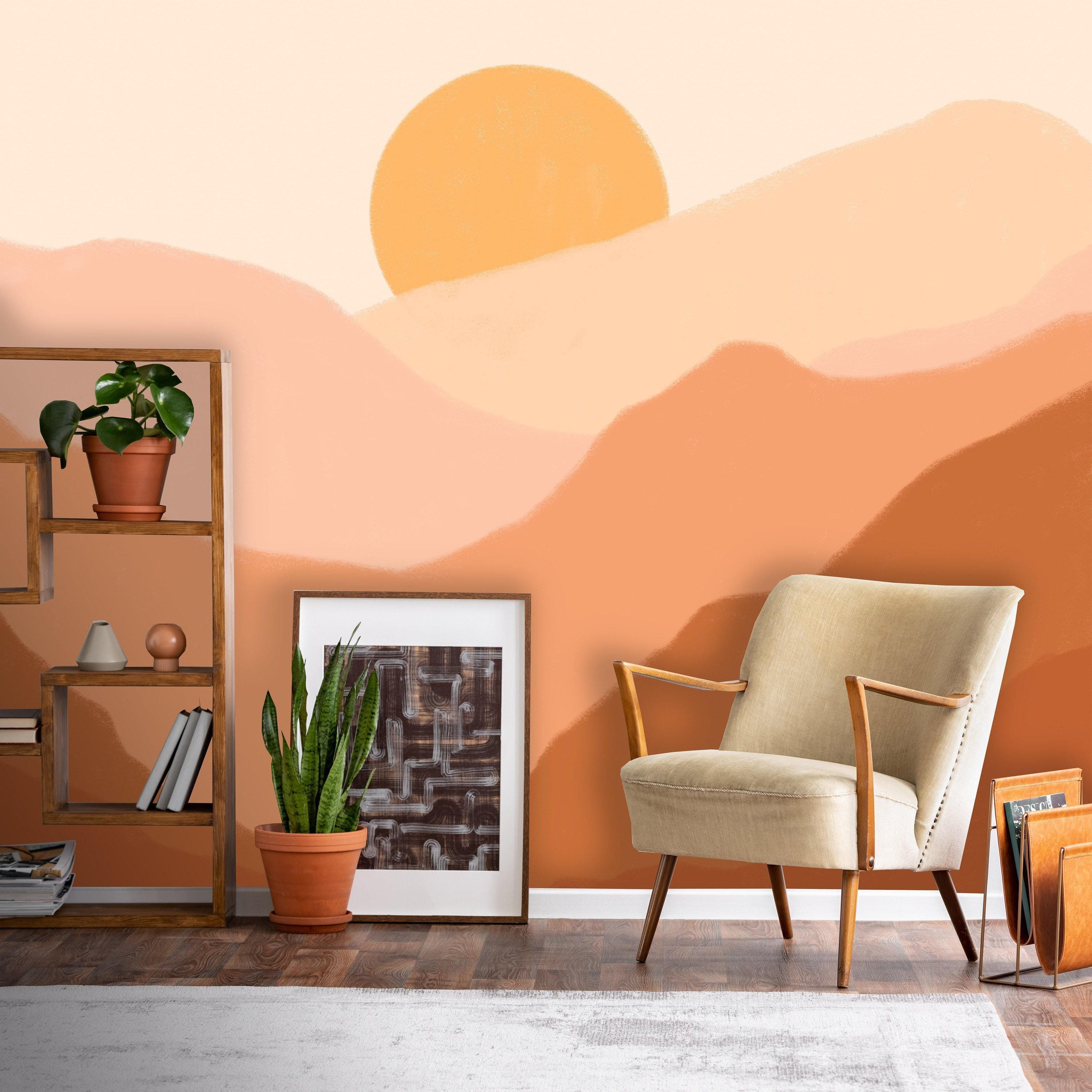 "Sun Mountain Peel and Stick Removable Wallpaper, Nursery Mountain Mural, Kids Wallpaper. Ombre...