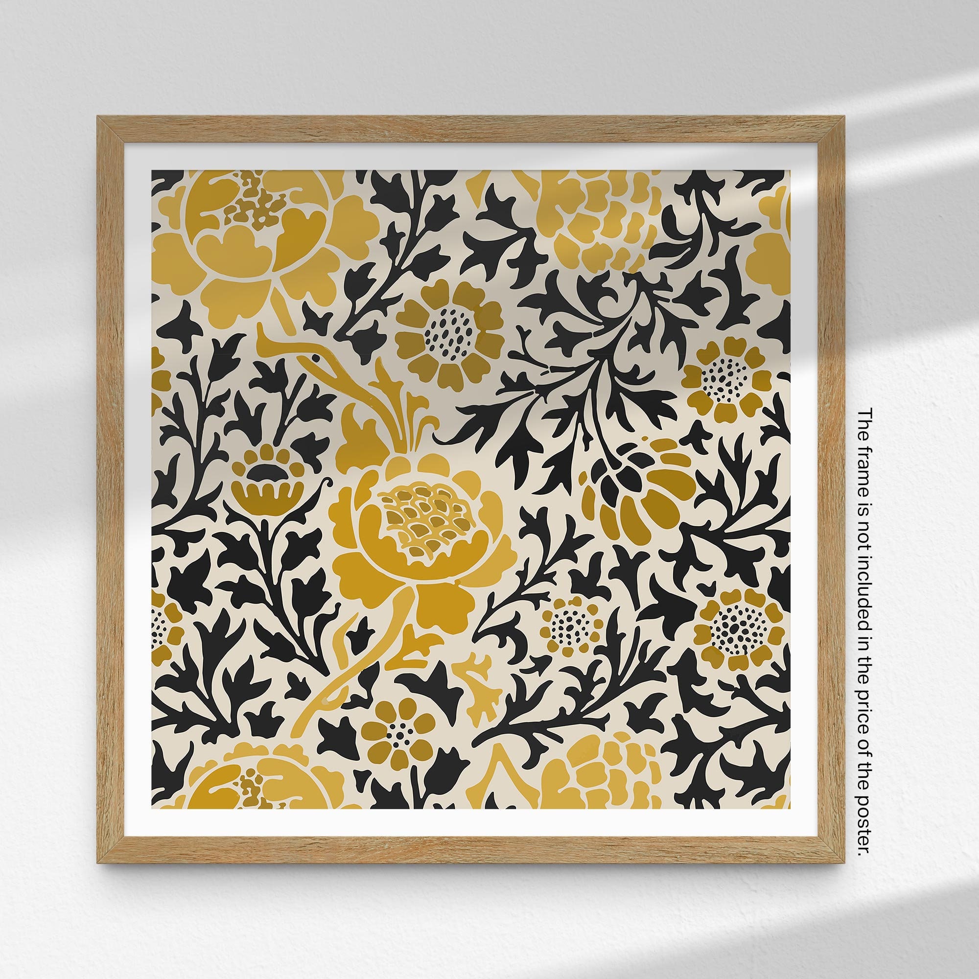Square Print, William Morris Flower Poster, Gold and Black Art Nouv...