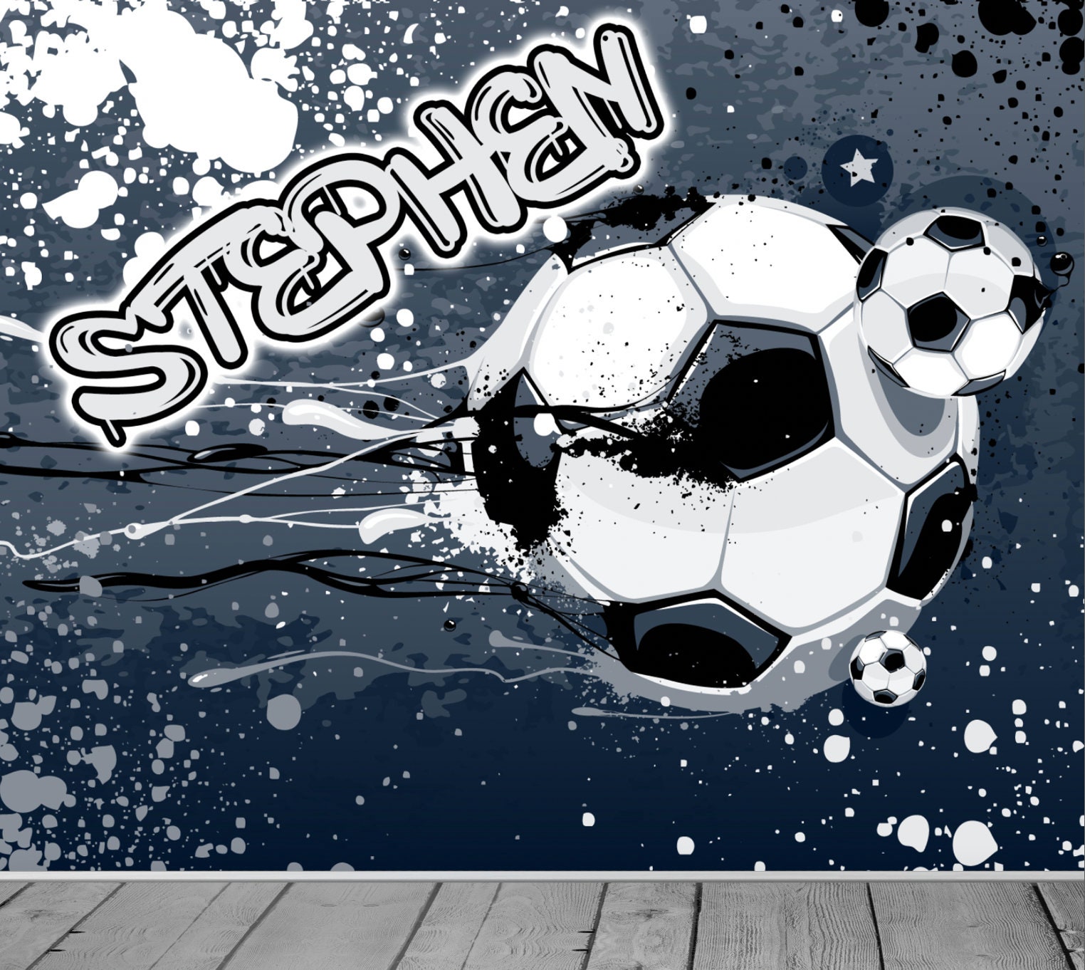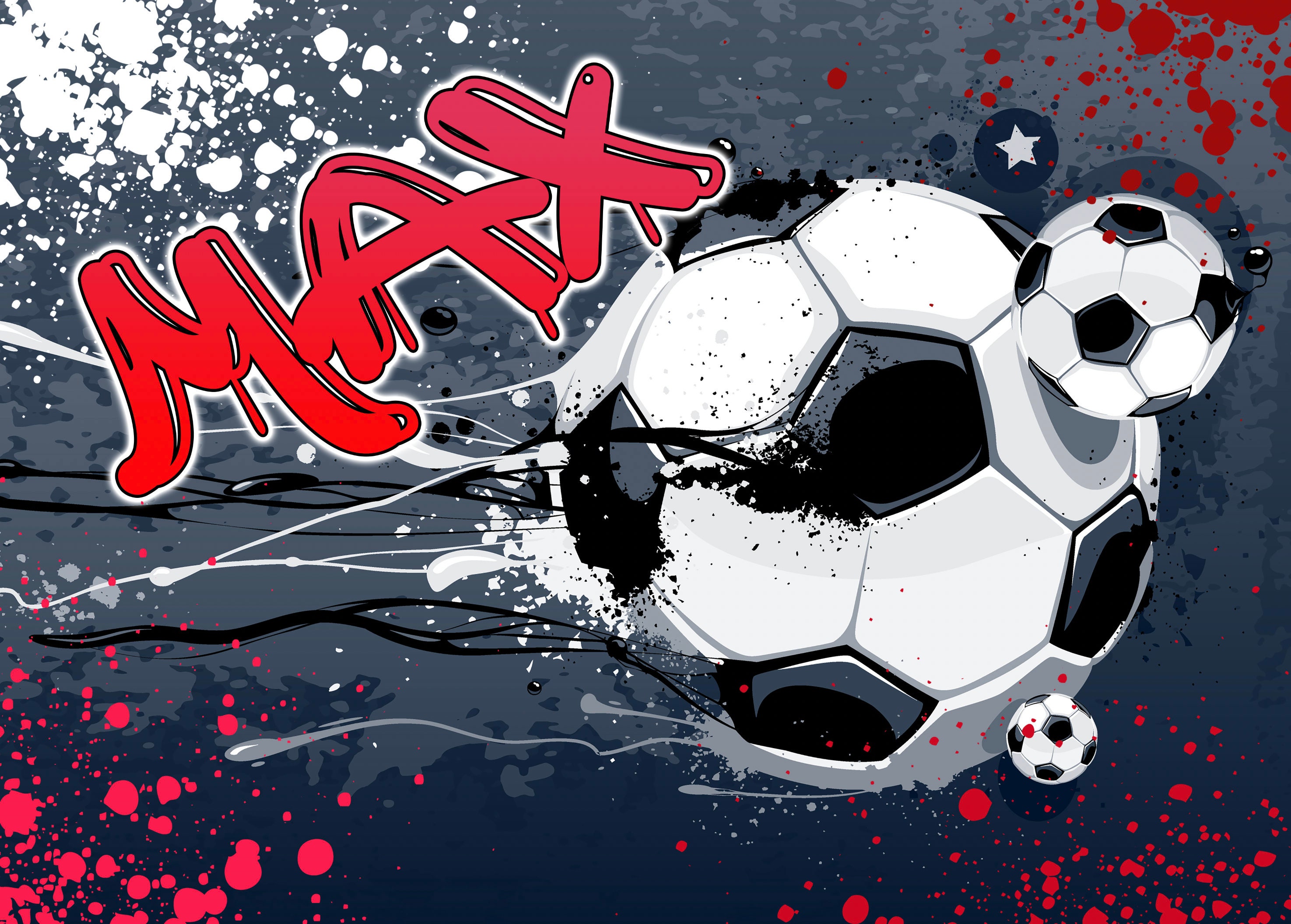 Personalised Name Football Theme Ball Soccer Modern Graffiti Wallpa...