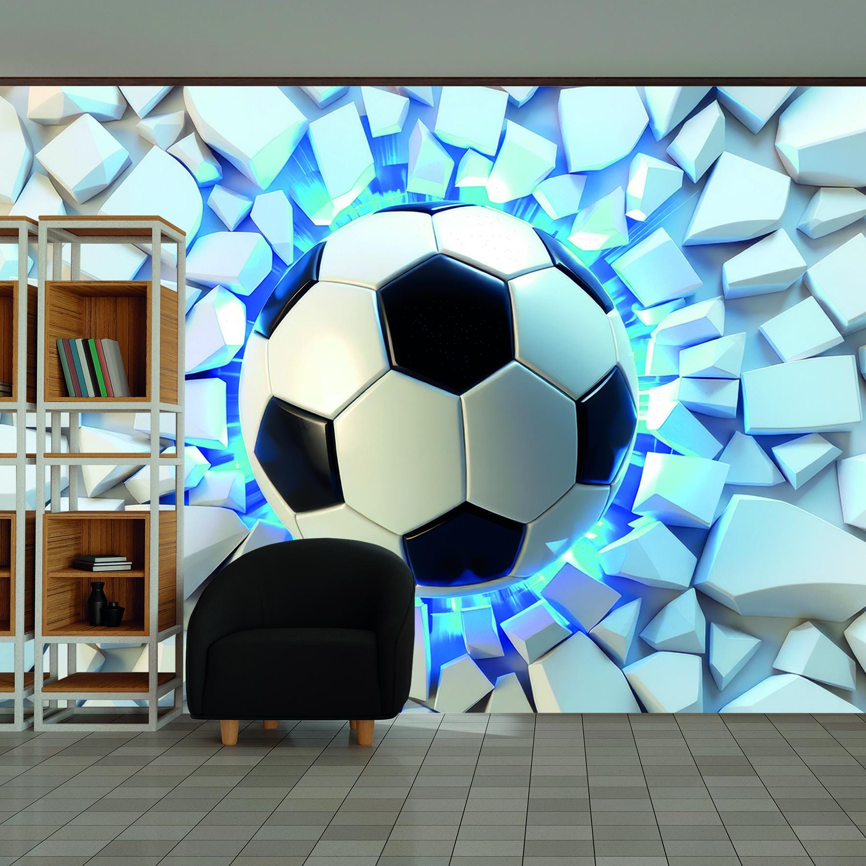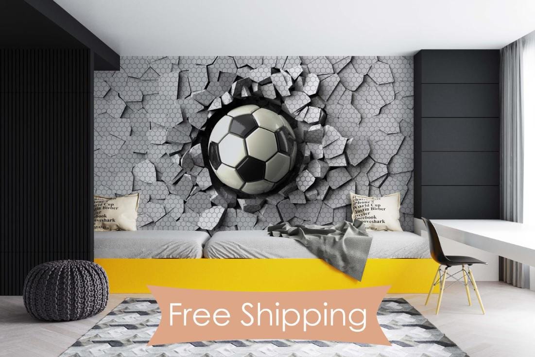"Soccer Ball Wall Mural Football Breaking Wall Sports Bedroom Wallpaper Boys Room Decor Kids no...