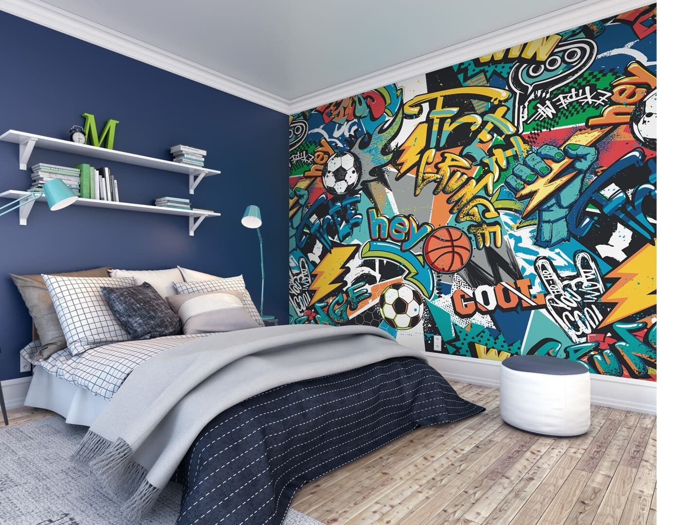 Graffiti Football Wallpaper mural for Boys Room Decor, Kids Sports ...