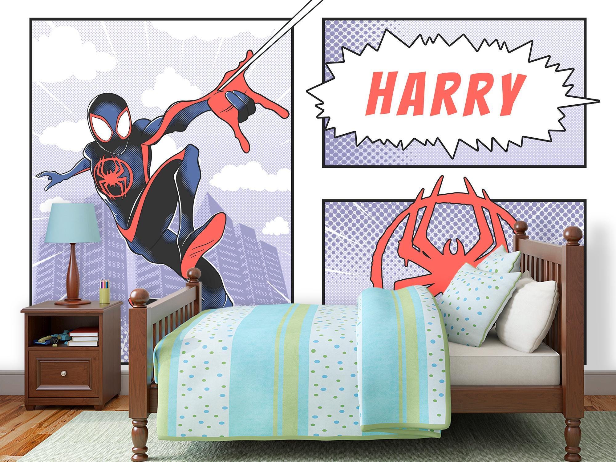 Custom Name Wallpaper Miles Morales for Boy Room, Superhero Spiderm...