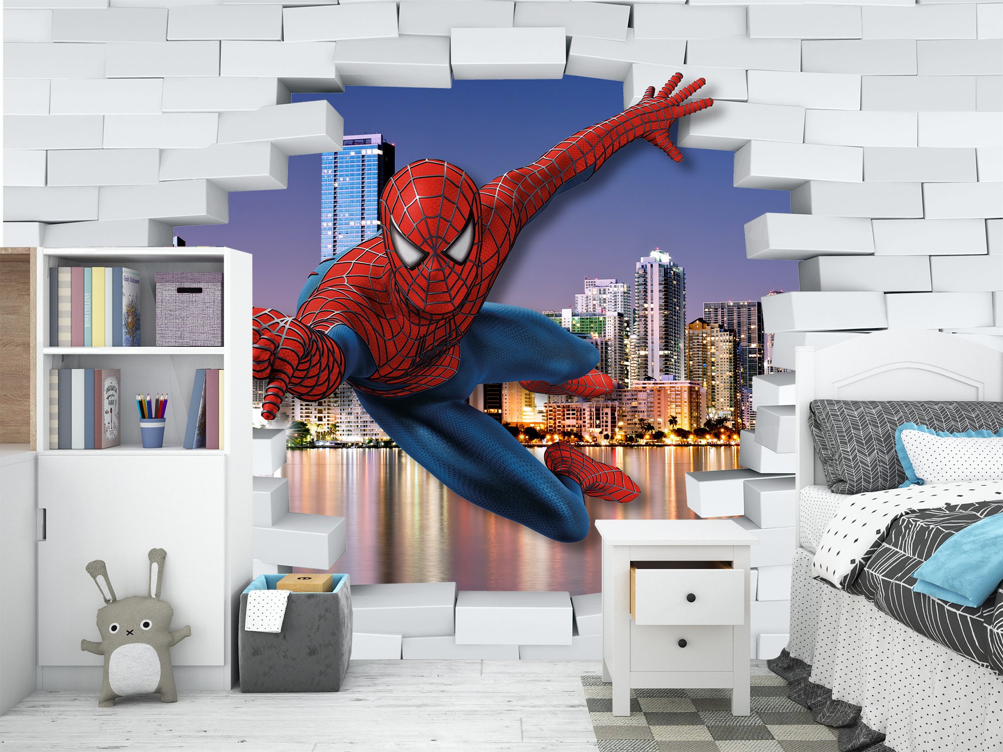 3D Wallpaper Spiderman Peel and Stick for Boy's Room - Superhero Wa...