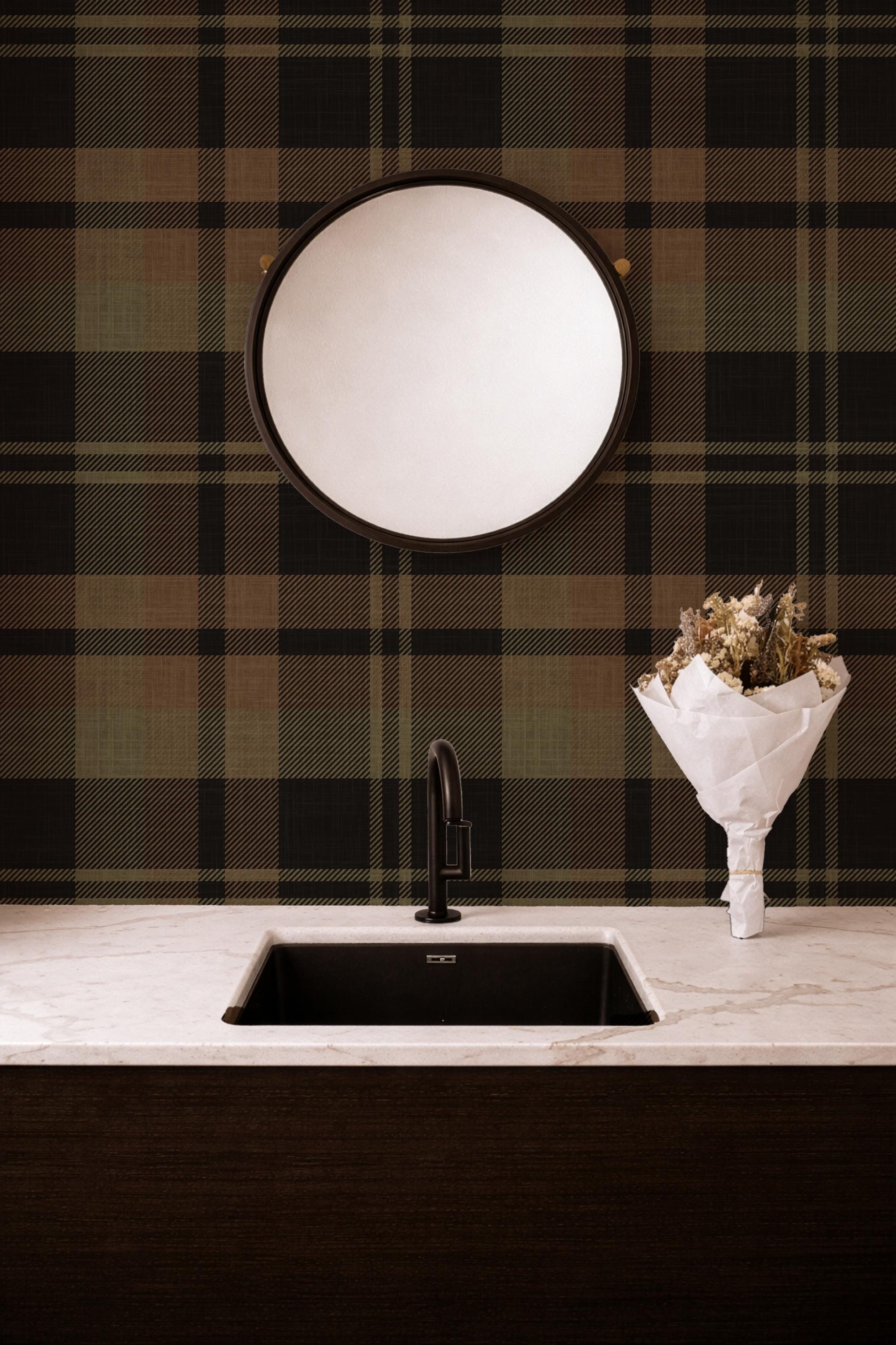 Dark black Plaid Wallpaper: rustic Farmhouse Style with dark olive ...