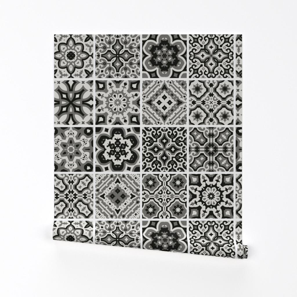 Talavera Tiles Removable Peel and Stick Wallpaper - Black White Gra...