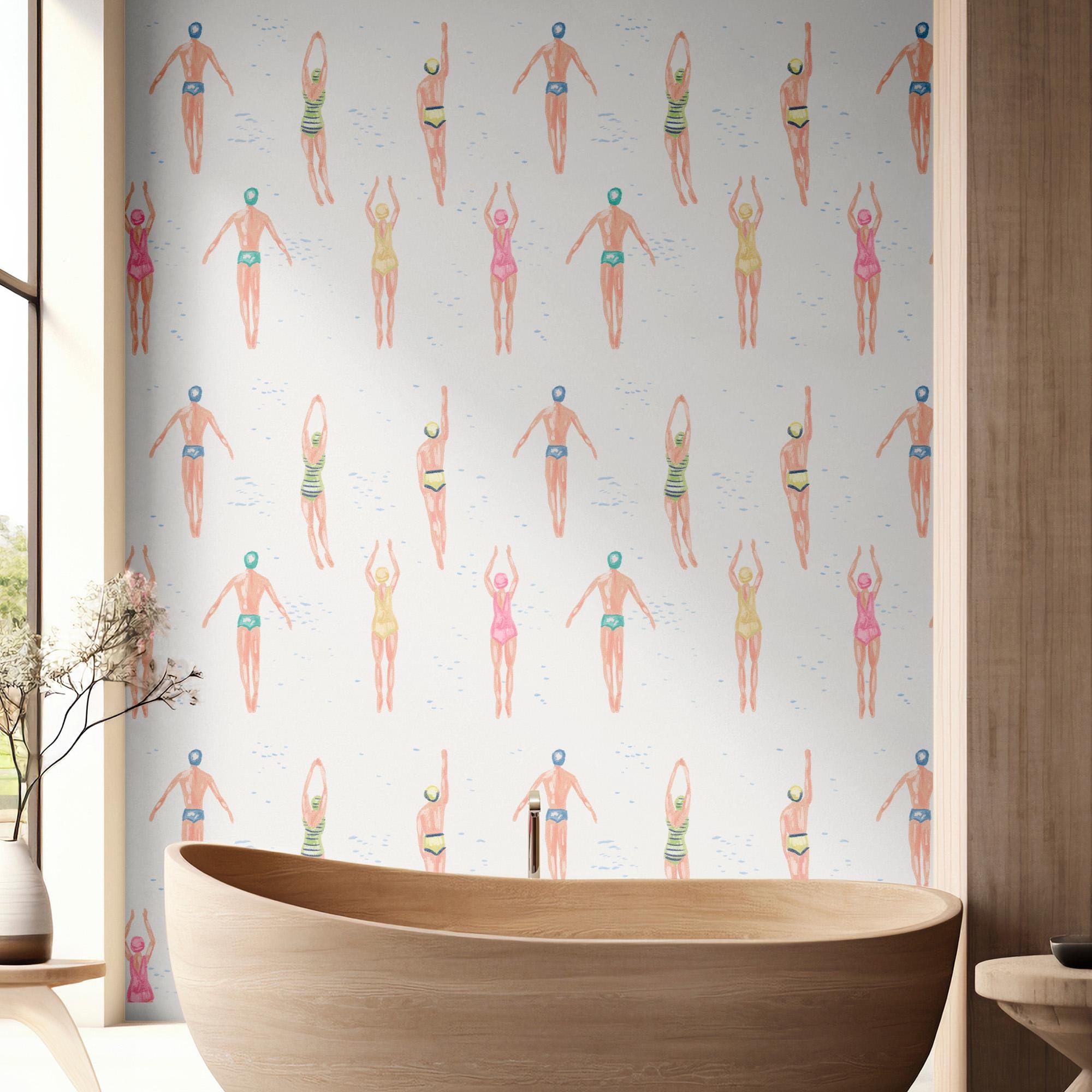 Retro Summer Swimmers Wallpaper - Peel & Stick Mural | Playful ...