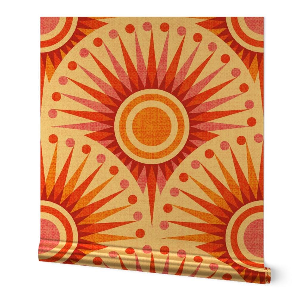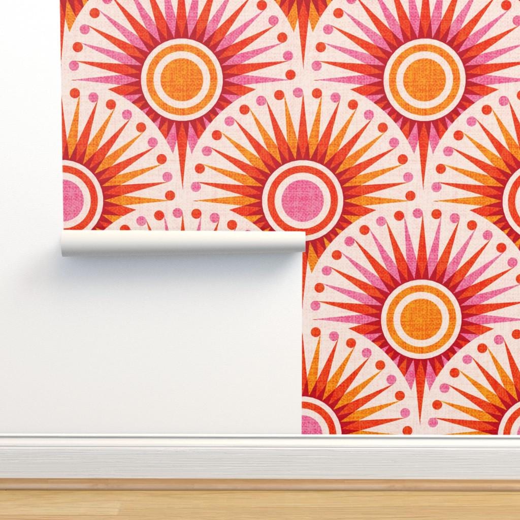 Retro Orange Sun Removable Peel and Stick Wallpaper - Boho Sun Pink...