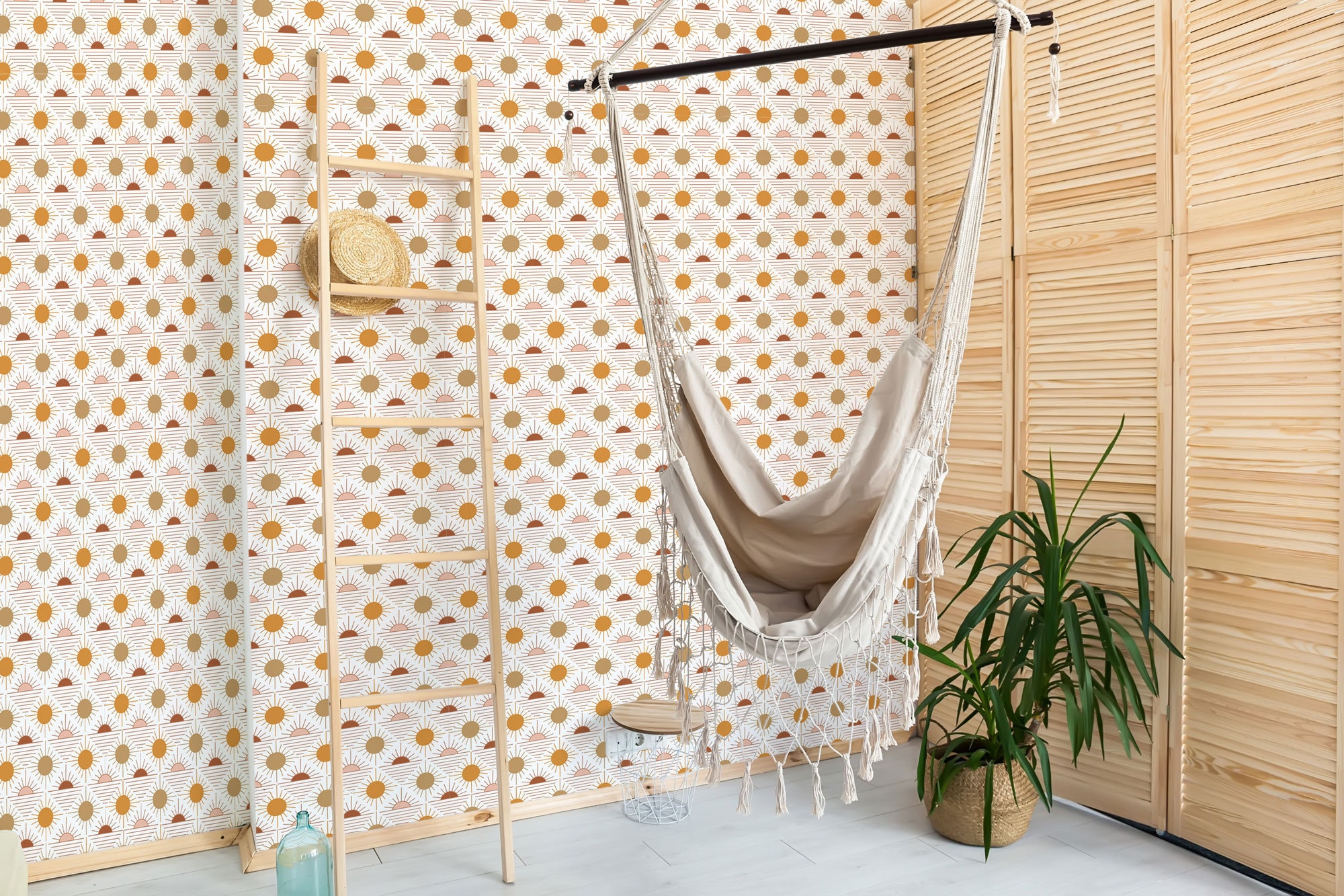 Boho sun peel and stick wallpaper / Bohemian sun removable wallpape...