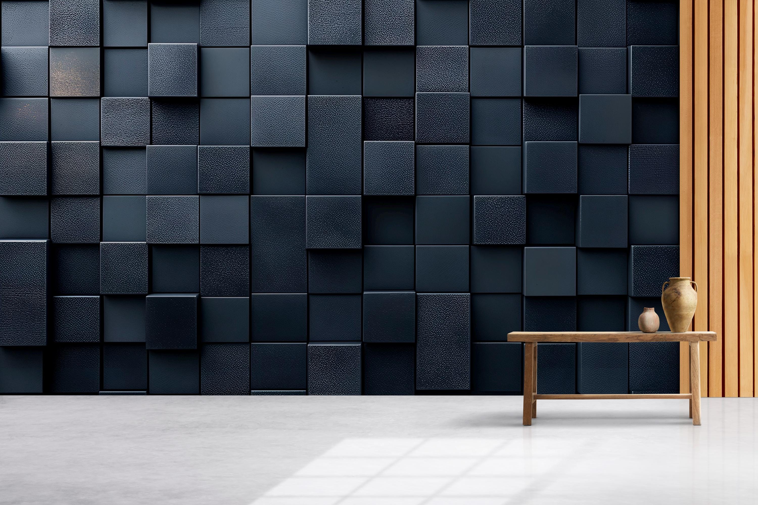 Modern 3D Black Square Wall Mural - Geometric Textured Wallpaper - Contemporary Accent Wall Dé...