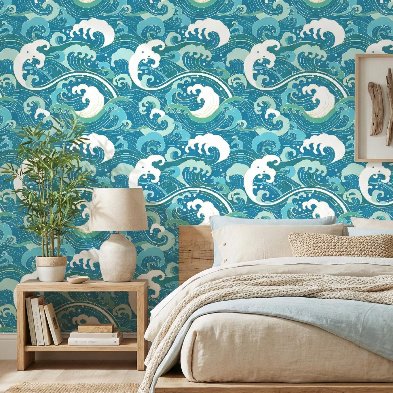 Japanese Wave Wallpaper Peel and Stick | Great Wave off Kanagawa Mu...