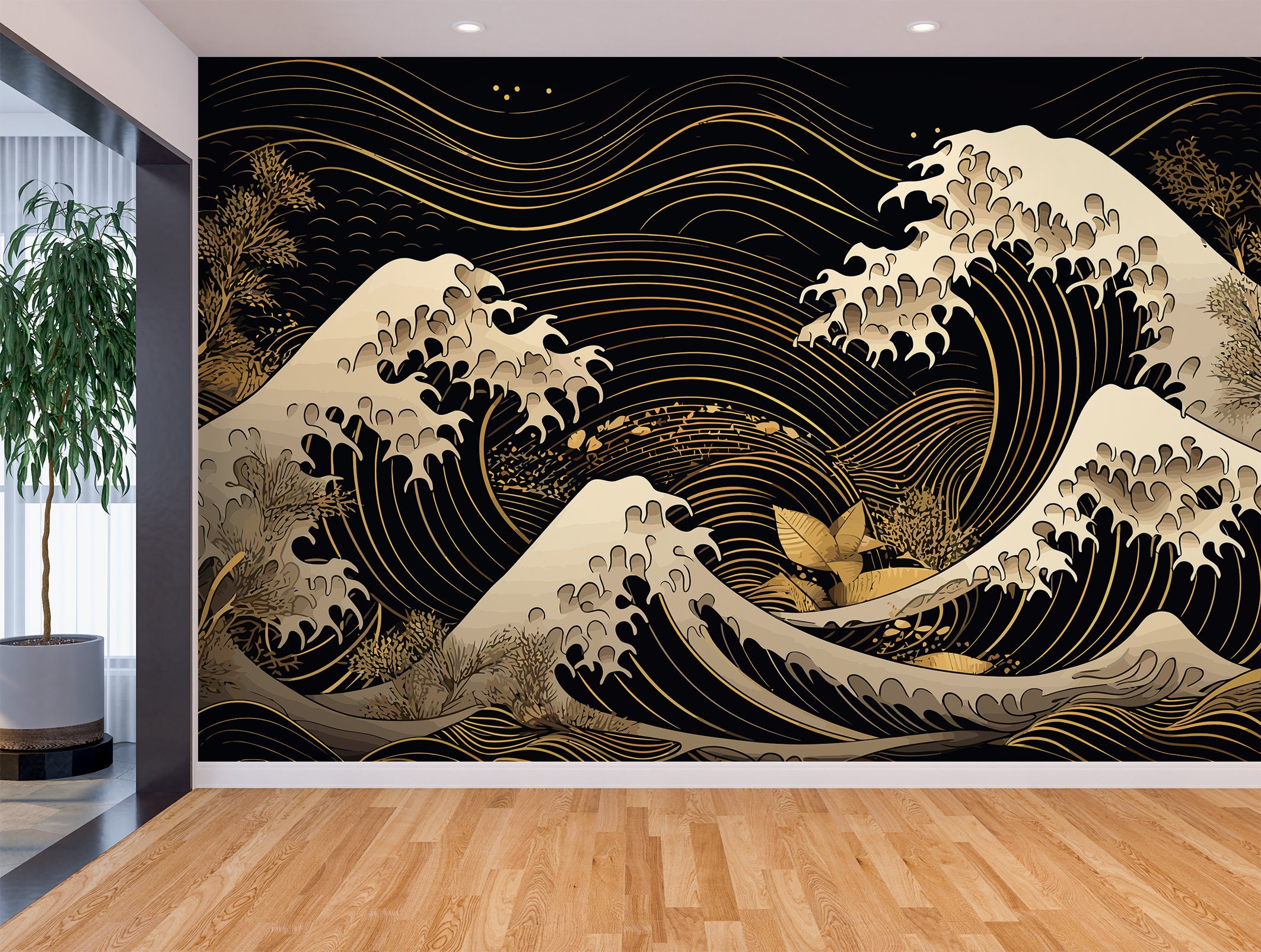 "Bring the iconic beauty of Japanese art into your home with The Great Wave wall mural. This st...