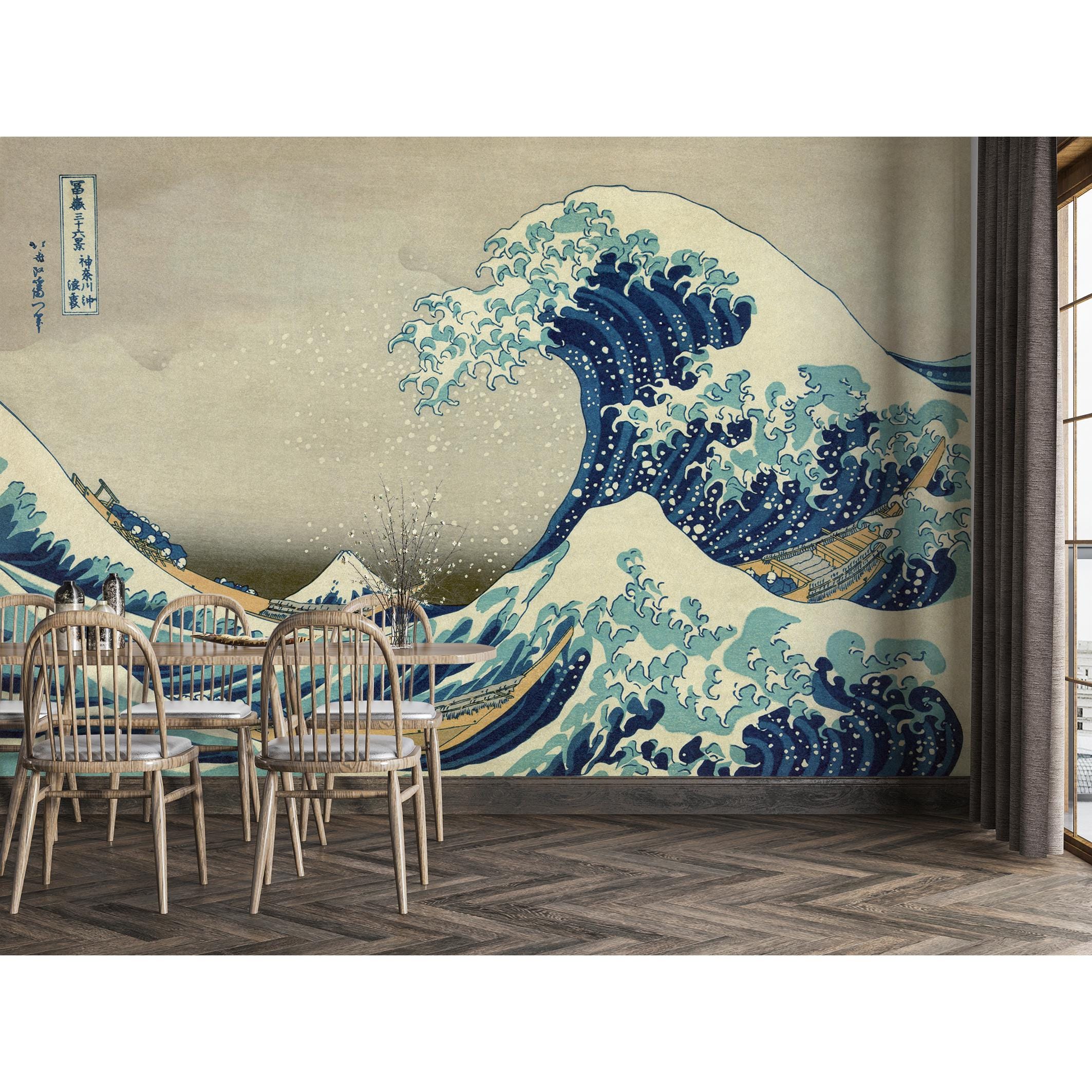The Wave Off Kanagawa Wallpaper Mural, Hokusai Inspired, Peel and S...