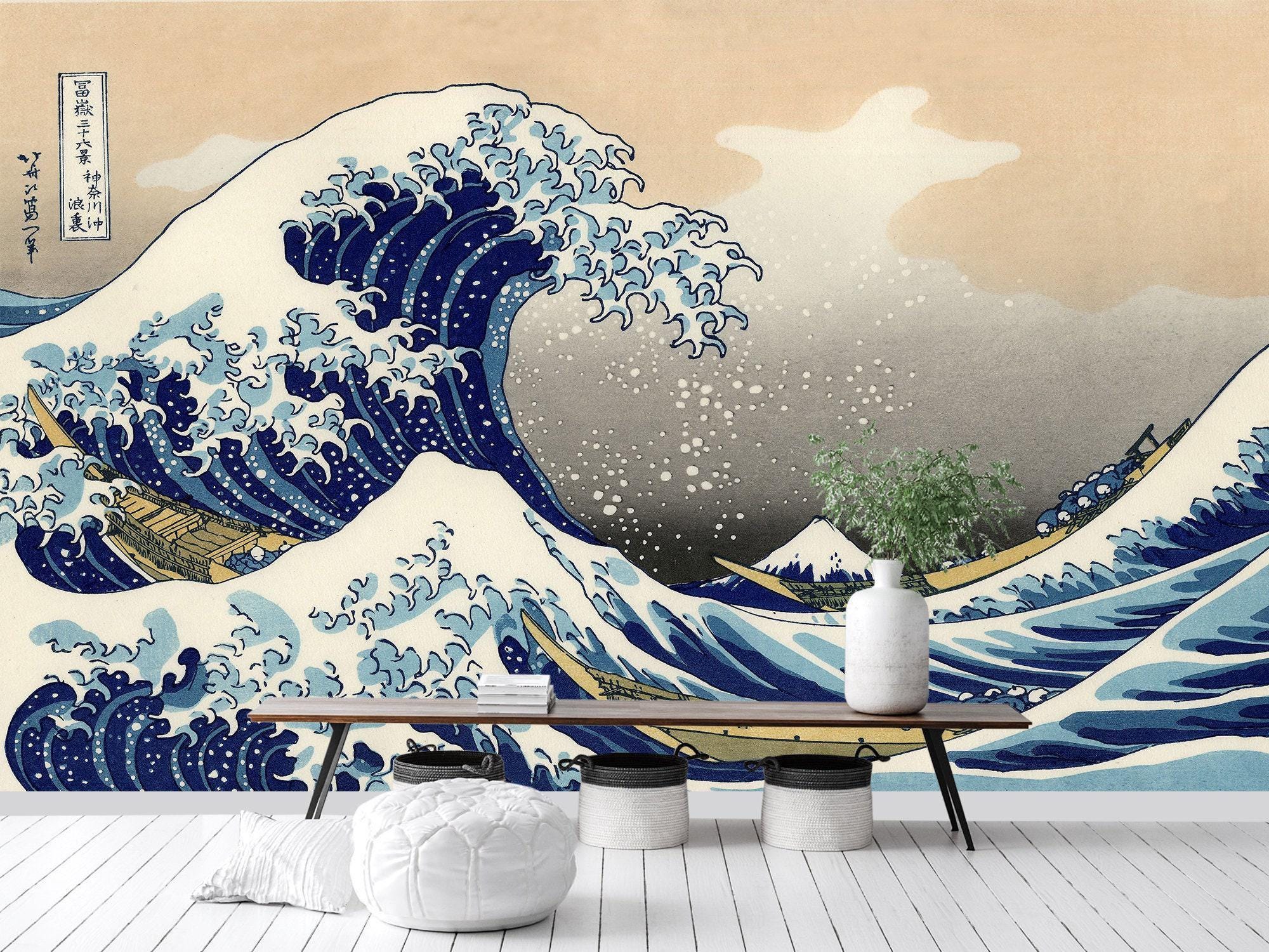 "Great Wave Kanagawa Japanese Wallpaper & Wall Art Mural Self Adhesive Katsushika Hokusai P...