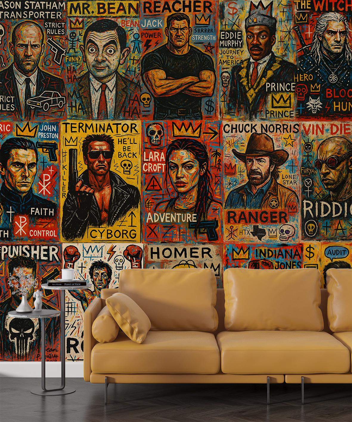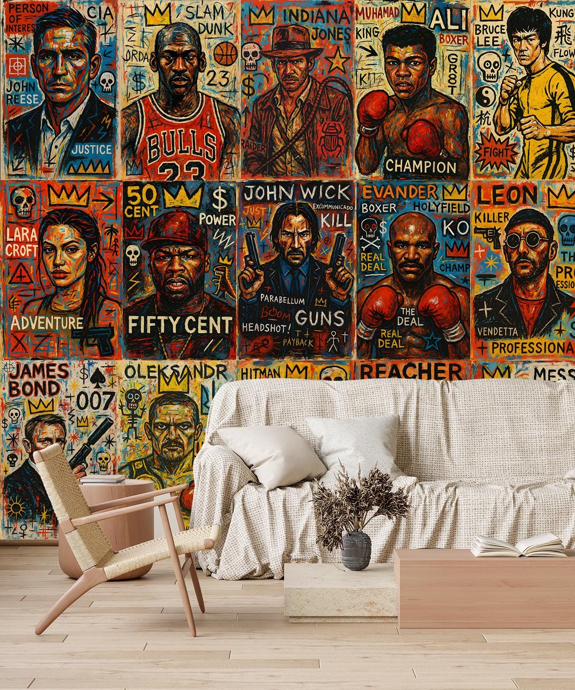 "Pop Culture Movie Stars Wallpaper Cinema Legends Street Art Mural Graffiti Collage Wall Decor ...