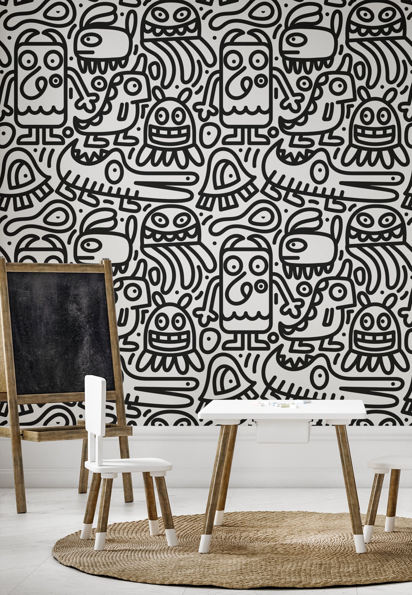 Black and white abstract animal wallpaper, doodle pattern, Wall Mur...